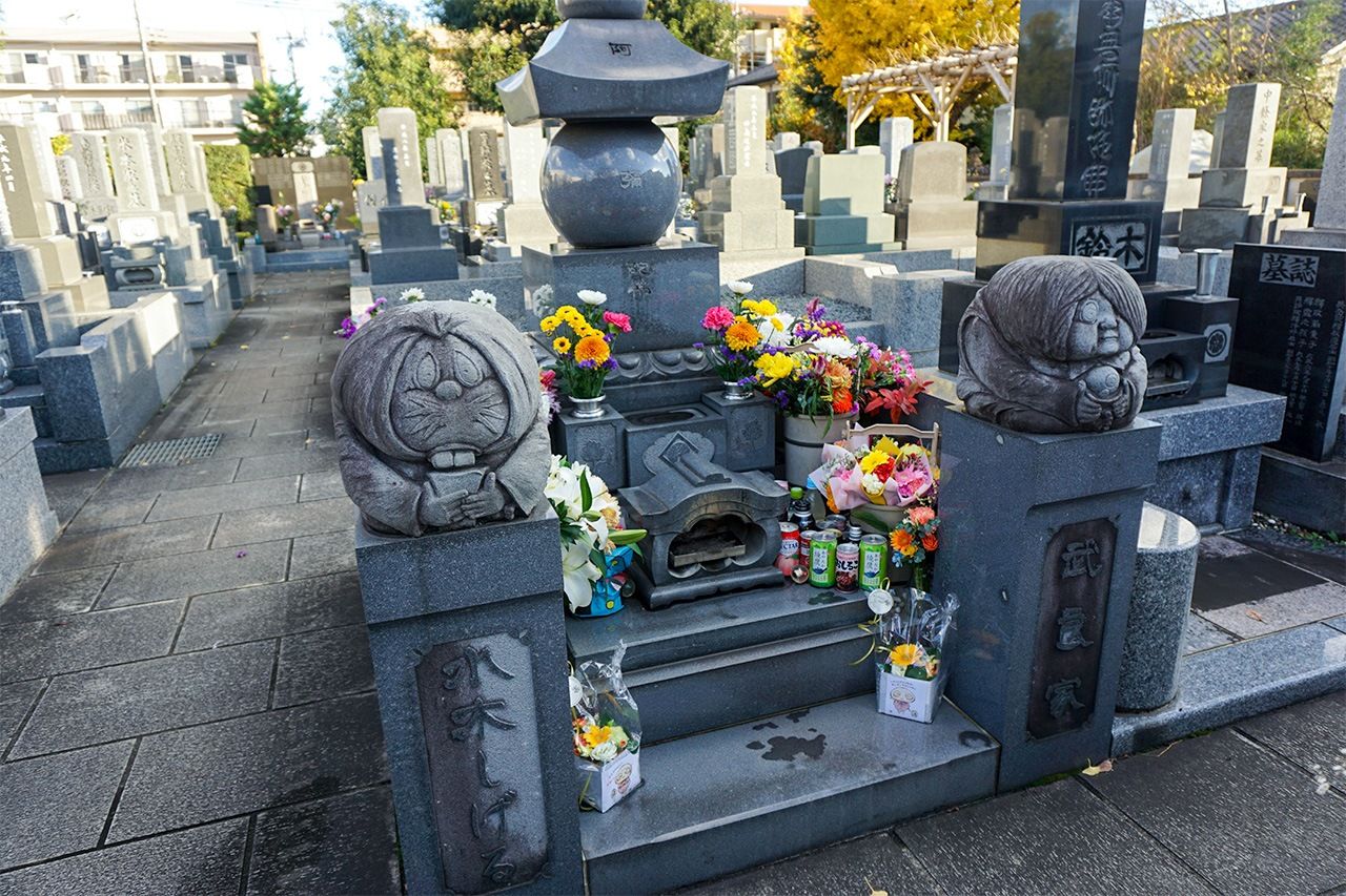 يمكن العثور على قبر ميزوكي بسهولة بين العديد من شواهد القبور الرمادية المسطحة لأنه محمي من كل جانب بتماثيل كيتارو ونيزوميوتوكو. كما تم نقش الكلمات التالية على شاهد القبر ”نامو أميدا بوتسو“ وترجمتها ”أنقذني، أميدا بوذا“. المزيد من يوكاي تزين السياج الحجري المنخفض المحيط بالمقبرة من ثلاث جهات، ويمكن التعرف بسهولة على Nekomusume والشخصيات الشعبية الأخرى.