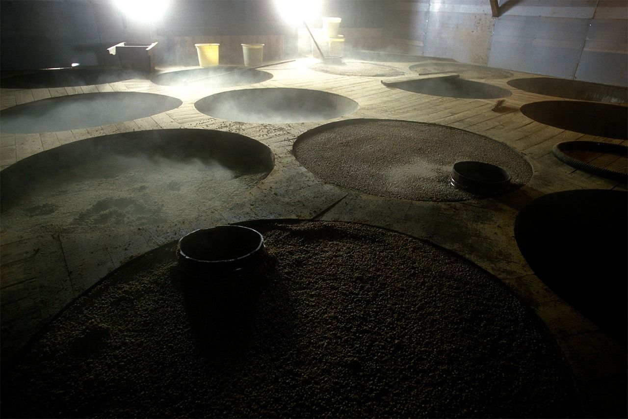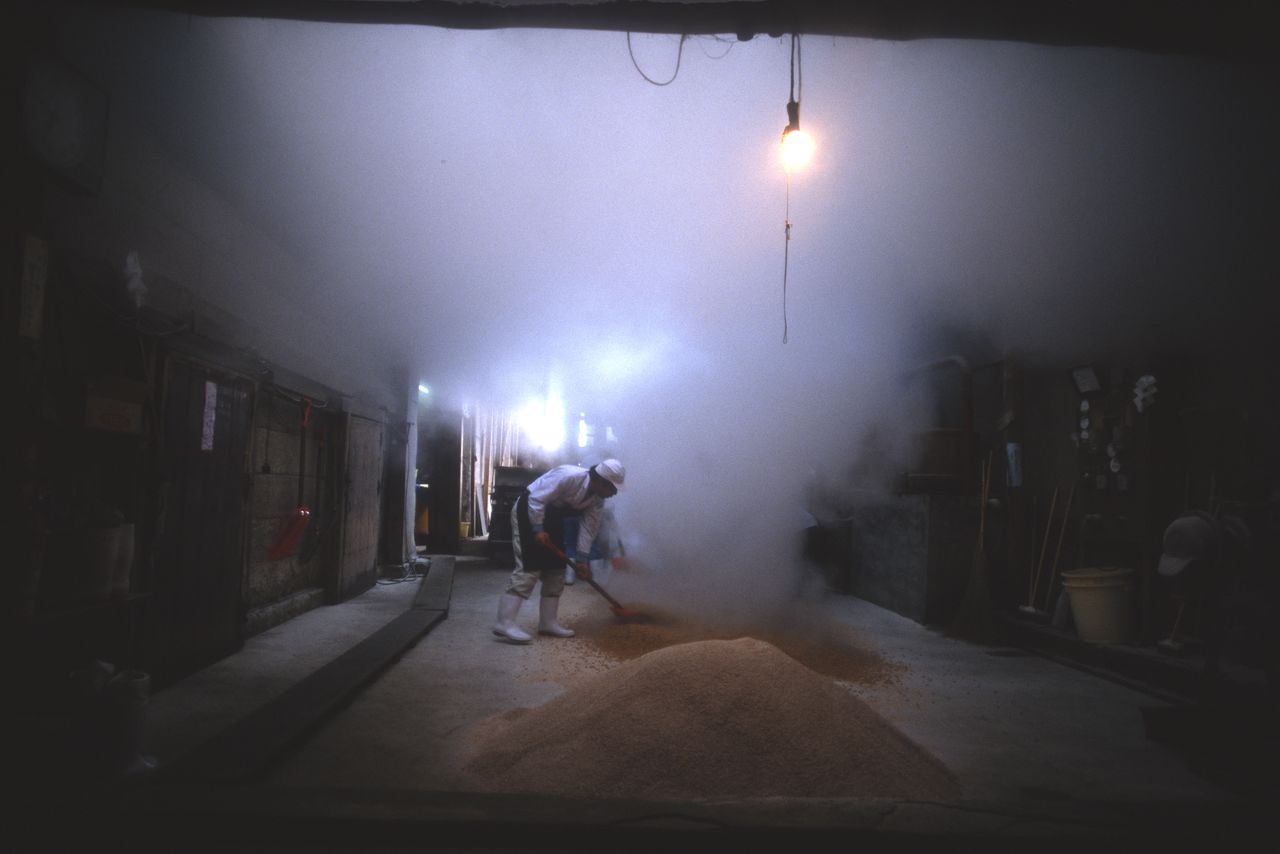 (المقالة الأصلية منشورة باللغة اليابانية، الترجمة من الإنكليزية. النص من قبل ماتسوتا يوكيي. الصور من أوهاشي هيروشي. صورة العنوان: سحابة من فطر كوجي تتجه للأعلى بينما يصب عامل المزيج البادئ في أحواض تخمير خشبية)
