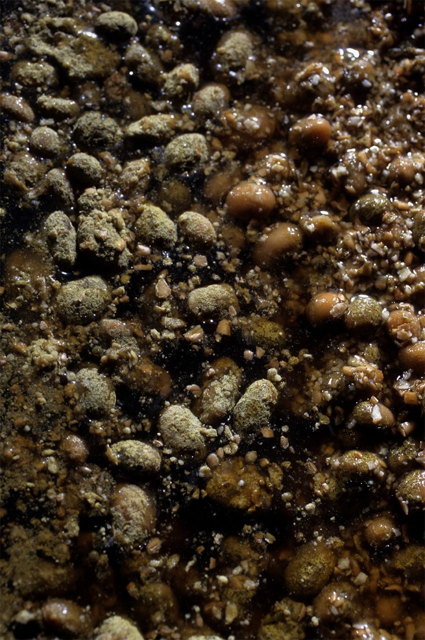 عامل في مصنع إيشيماغو لإنتاج صلصة الصويا في يوزاوا بمحافظة أكيتا، يستخدم مجرفة لخلط فول الصويا المعاملة بالبخار والقمح المحمص مع ’’تانيكوجي‘‘. بعد ذلك تتم تعبئة الخليط في صناديق خشبية ضحلة وتترك للتخمر داخل غرفة ’’كوجي مورو‘‘.