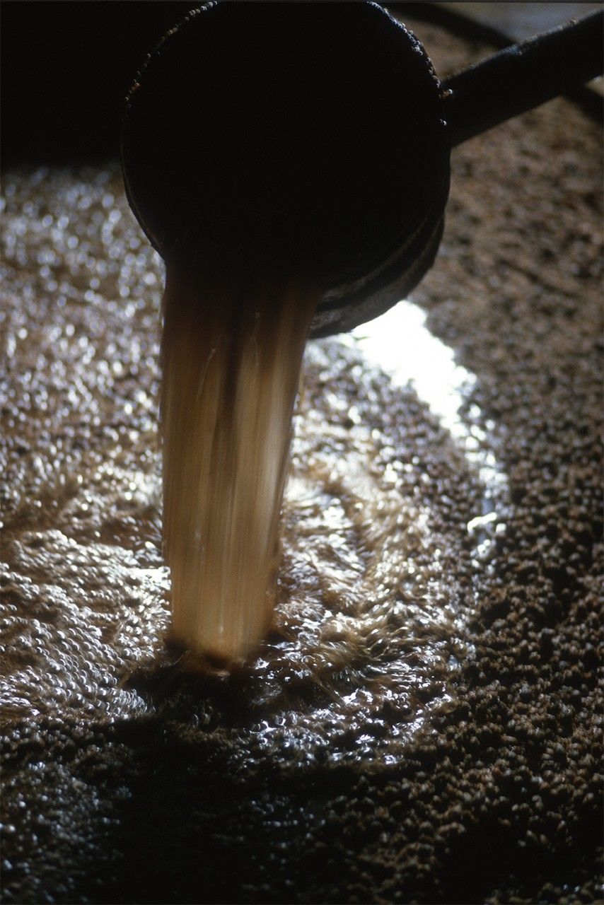 يقطع السكون السائد داخل مستودع صلصة الصويا صوت حرفي صناعة التخمير وهو يتسلق بسرعة إلى أعلى وأسفل درج خشبي يؤدي إلى أحواض عملاقة مملوءة بكميات قديمة من الهريس. في كل مرة يصعد فيها يحمل على كتفه دلوا خشبيا مملوءا بمزيج بادئ – فول الصويا والقمح المغطى بفطر كوجي – ويسكب المكونات في حوض ضخم قادر على استيعاب حوالي 5500 لتر، لتتشكل سحابة من الغبار. بمجرد اكتمال المهمة التي تقصم الظهر، يضاف الملح والماء ويقلب الخليط، مما ينشط عمل الميكروبات لتقوم بإنتاج صلصة الصويا.