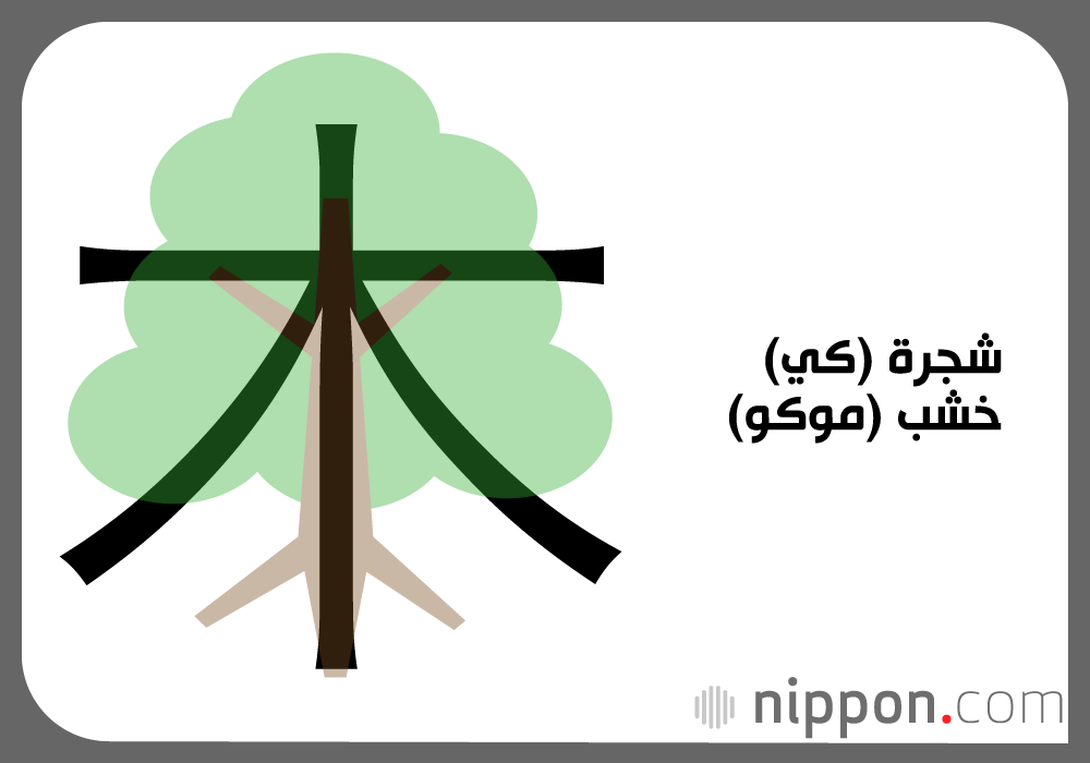 يتعلم تلاميذ المدارس الابتدائية في اليابان حرف الكانجي ”木“، الذي يعني ”شجرة“ أو ”خشب“ خام، في الصف الأول. كما يدرسون حرف ”林“ الذي يشير إلى ”بستان“ أو مجموعة صغيرة من الأشجار، و”森“ الذي يعني ”غابة“. ويصبح تعلم هذه الحروف أسهل انطلاقًا من الجذر الأساسي ”شجرة“، على غرار تعلم الأرقام ”一二三“ (واحد، اثنان، ثلاثة).