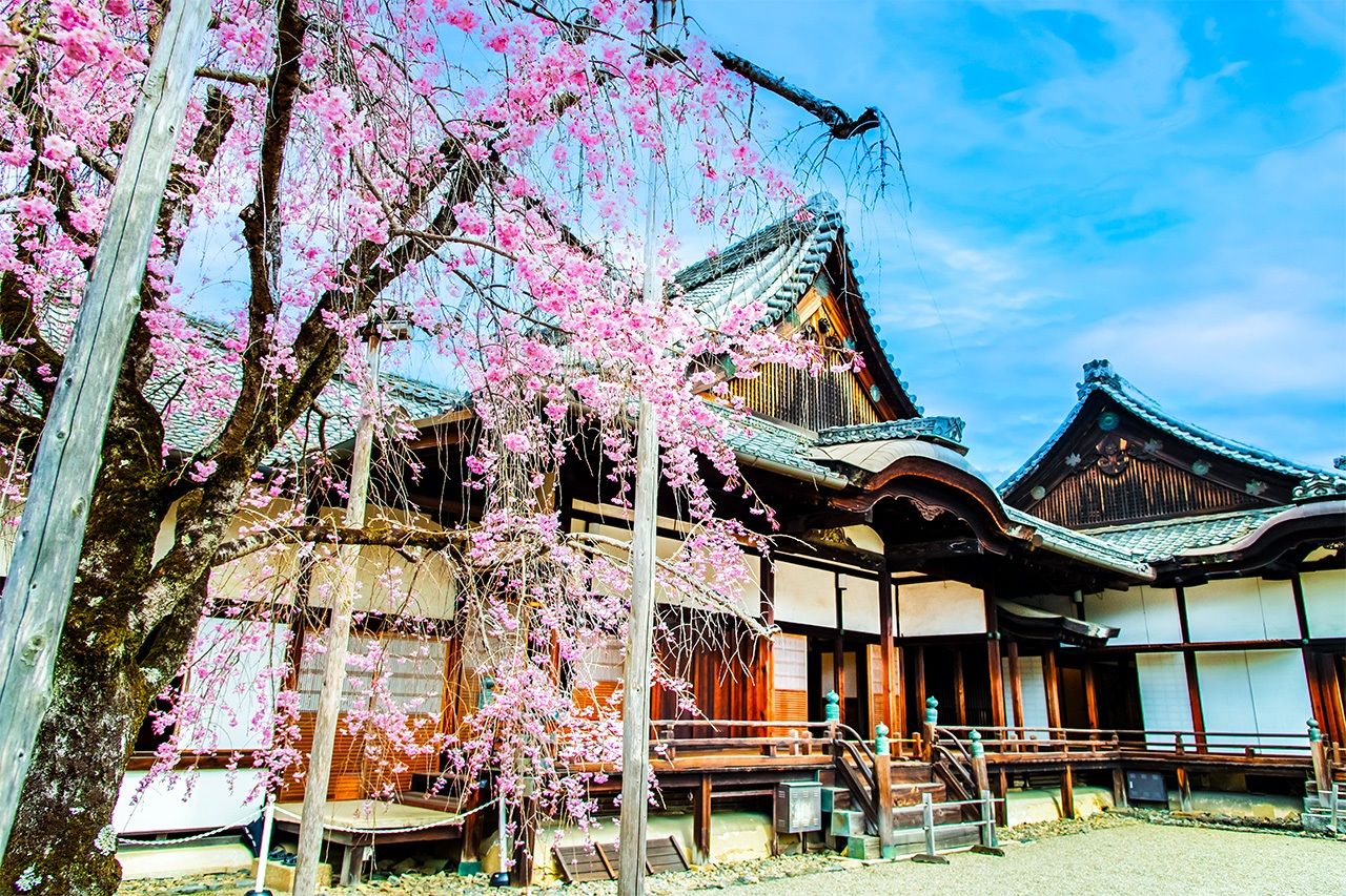 يشتهر معبد دايغوجي بكونه الموقع الذي شهد حفل أزهار الكرز الذي أقامه هيدييوشي، وقد تم إدراجه في قائمة التراث العالمي لليونسكو كجزء من المعالم التاريخية في مدينة كيوتو القديمة. ويظهر في الصورة المعبد الفرعي ”سانبوئن“ داخل معبد دايغوجي وأزهار الكرز في وقت تفتحها الكامل. (© بيكساتا)