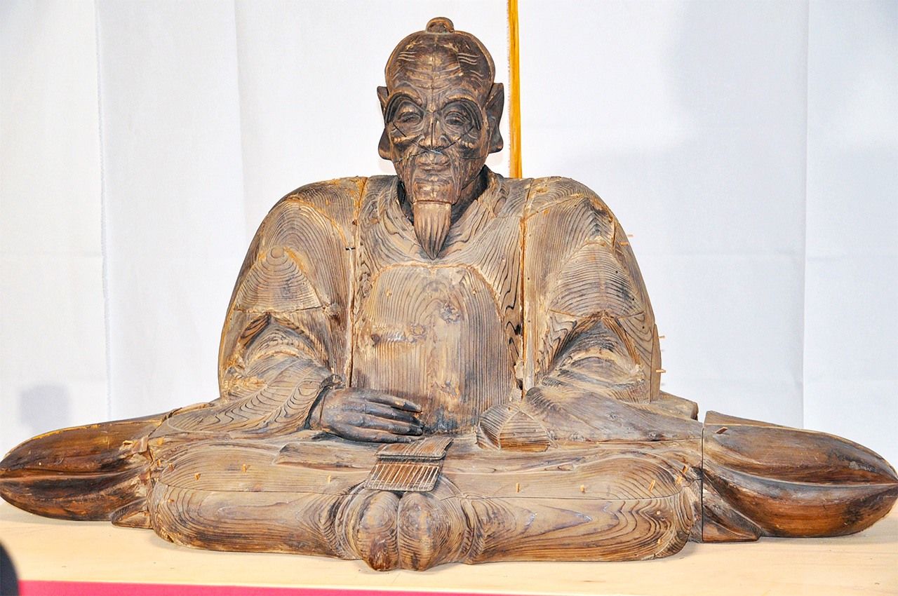 تم اكتشاف تمثال خشبي يُعتقد أنه لـ تويوتومي هيدييوشي في معبد أوميا في أوساكا في مايو/ آيار 2020. وهذا التمثال، الذي يعود تاريخه إلى حقبة إيدو (1603-1868)، بالحجم الطبيعي، وبالتالي فهو أكبر تمثال لـ هيدييوشي في اليابان. (© جيجي برس)