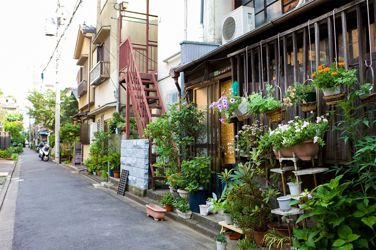 كما تختبئ خلف واجهات المتاجر والمباني الشاهقة أزقة ضيقة مزينة بمختلف أنواع النباتات والورود، بالإضافة إلى وجود العديد من المعابد الصغيرة المحاطة بأشجار قديمة. هذه اللوحة الفاتنة تشبه إلى حد كبير العوالم الموازية الموجودة في روايات موراكامي هاروكي، حيث تتوارى خلف الطرق الرئيسية الصاخبة حياة ريفية دافئة وبسيطة، تسير فيها الحياة بوتيرة أبطأ وأكثر هدوءًا.