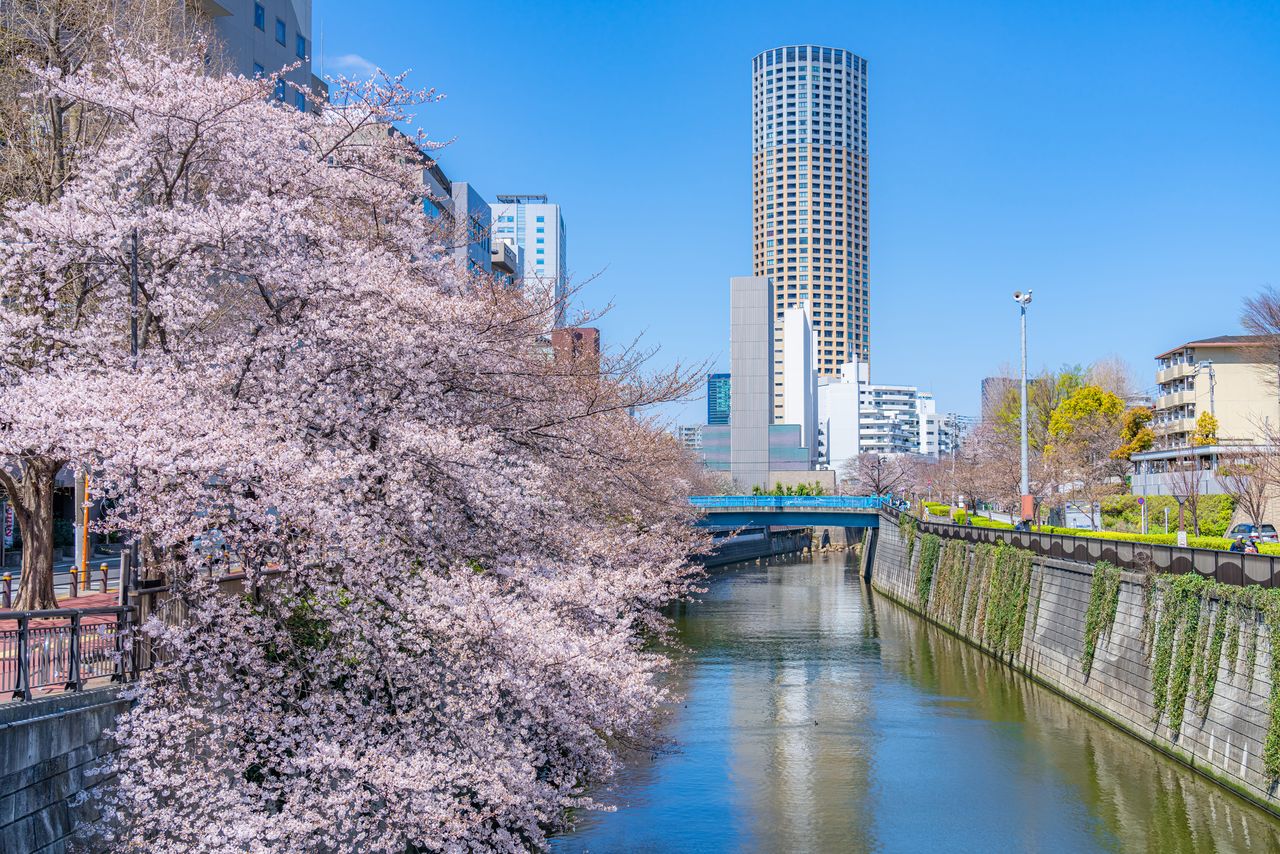 بين غوتاندا وأوساكي تتربع مجموعة من ناطحات السحاب الشاهقة على جانبي نهر ميغورو.(© بيكستا)
