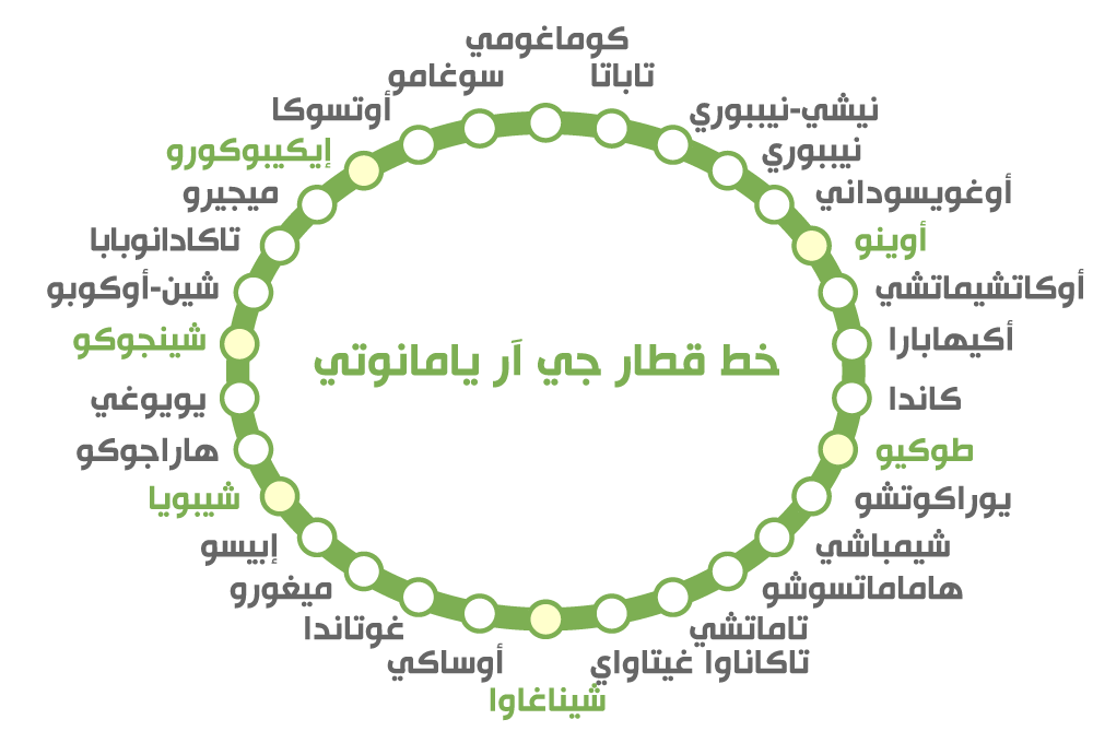 المحطات التي يتوقف بها قطار خط يامانوتي تتخذ شكل الحلقة.(© بيكستا)