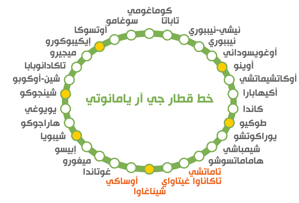 المحطات على خط يامانوتي الدائري. (© بكستا)