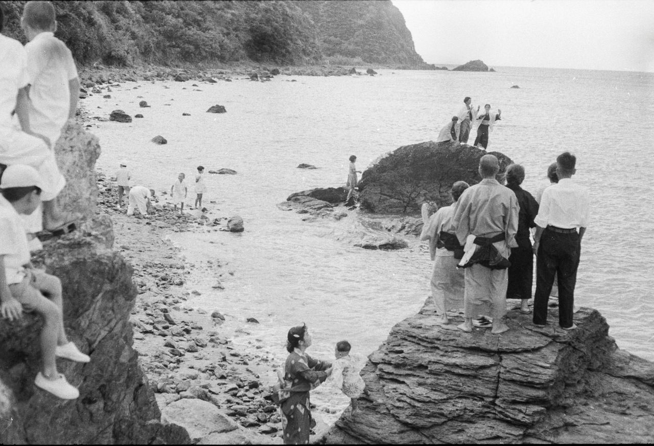 (النص الأصلي كُتب باللغة اليابانية، والترجمة من اللغة الإنكليزية. المادة النصية والصور من إعداد هامادا فوتوشي. صورة الموضوع: على اليسار، تجمع على شاطئ جزيرة أوكينوئرابوجيما في عام 1955، التقطها هاغا هيدييو، الذي أعرب عن أسفه لاختفاء هذا التقليد [© هاغا هيدييو]؛ وعلى اليمين: مهرجان هاماؤري بجزيرة توكونوشيما، الذي مازال يحافظ على بعض من روابط المجتمع [© هامادا فوتوشي].)