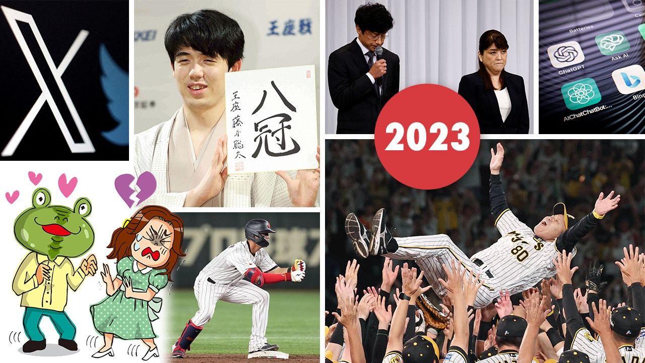 (المقالة الأصلية منشورة باللغة الإنكليزية. صورة العنوان، في اتجاه عقارب الساعة من أعلى اليسار: شعار X [تويتر سابقا]: © رويترز، فوجي سوتا عبقري الشوغي: © جيجي برس، هيغاشياما نوريوكي رئيس شركة Smile-Up [Johnny and Associates سابقا] والرئيسة السابقة للشركة جولي فوجيشيما: © رويترز، باتت تطبيقات للذكاء الاصطناعي مشهدا شائعا على الأجهزة اليوم: © رويترز، أوكادا أكينوبو مدير فريق نمور هانشين يحمله فريقه على الأكف بعد بطولة الدوري: © جيجي برس، لارس نوتبار يؤدي حركة طاحونة الفلفل بعد تنفيذه ضربة ناجحة لصالح منتخب الساموراي الياباني: © كيودو، رسم توضيحي لظاهرة ”التحول إلى ضفدع“: © بيكستا)