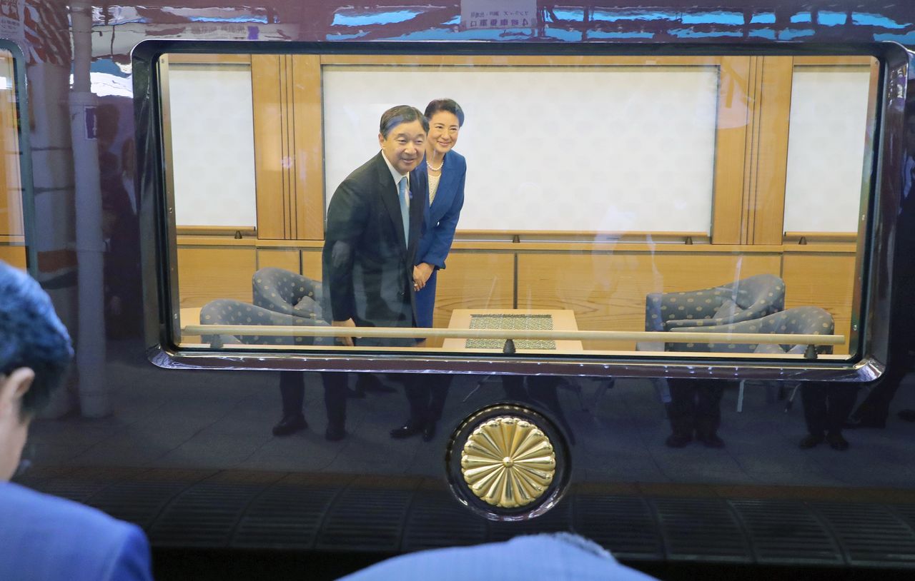 الإمبراطور ناروهيتو والإمبراطورة ماساكو يغادران عربة القطار التي انطلقت من محطة طوكيو باتجاه محافظة إيباراكي في 28 سبتمبر/أيلول عام 2019. الصور من جيجي برس.