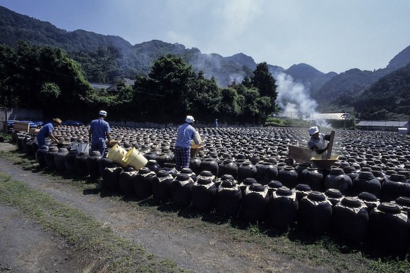 ينضج خل أرز كوروزو في الجرار الخزفية السوداء في فوكوياما، بمحافظة كاغوشيما. ويلتزم الحرفيون بالطرق التقليدية، ويترك السائل يتخمر ويتعتق ببطء تحت الشمس. الصورة مقدمة من أوهاشي هيروشي.