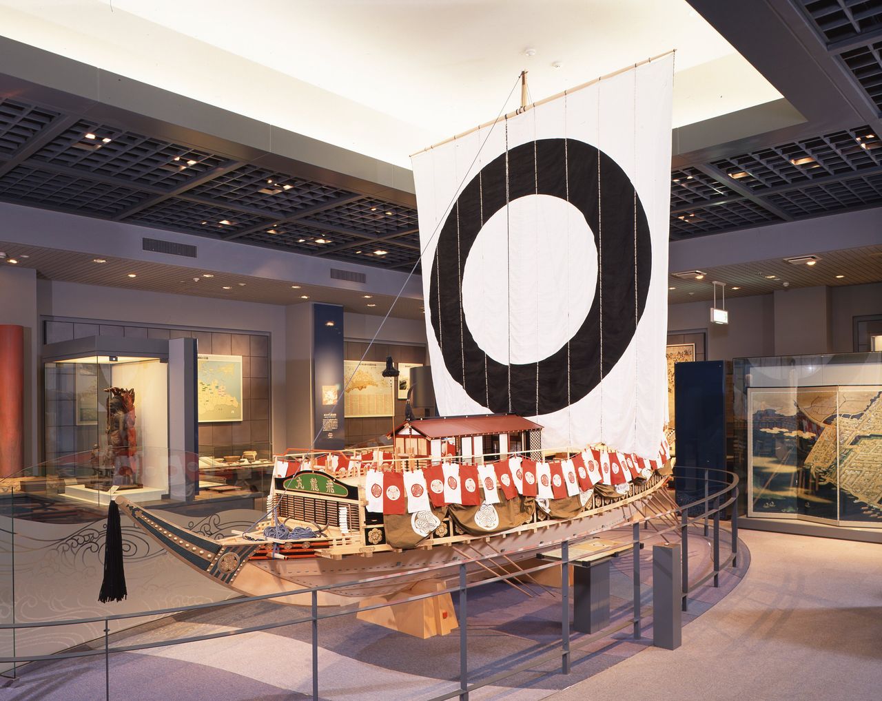 نموذج تم بناؤه بشكل مطابق لسفينة هيريومارو الأصلية. لا تزال هناك لوحة تُسمى ”مخطط الأجزاء التفصيلية لسفينة هيريومارو“، وقد تم بناء النموذج بإتقان بناءً على تلك اللوحة. الصورة مقدمة من متحف مدينة تاكاماتسو التاريخي