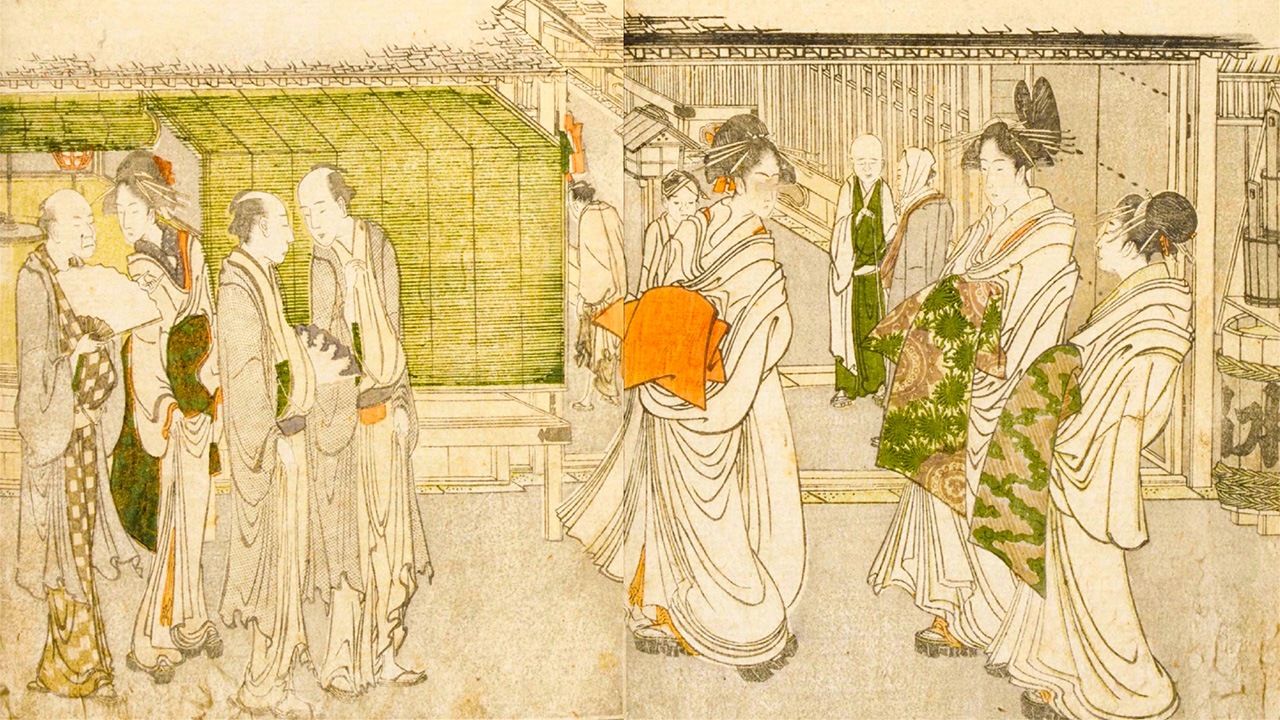 (المقالة الأصلية منشورة باللغة اليابانية، الترجمة من الإنكليزية. صورة العنوان: نساء في حي يوشيوارا يرتدين أثواب كيمونو بيضاء من أجل مهرجان هاسّاكو من سلسلة ”مناظر جميلة للعاصمة الشرقية في لمحة سريعة“. الصورة بإذن من مكتبة البرلمان القومية)