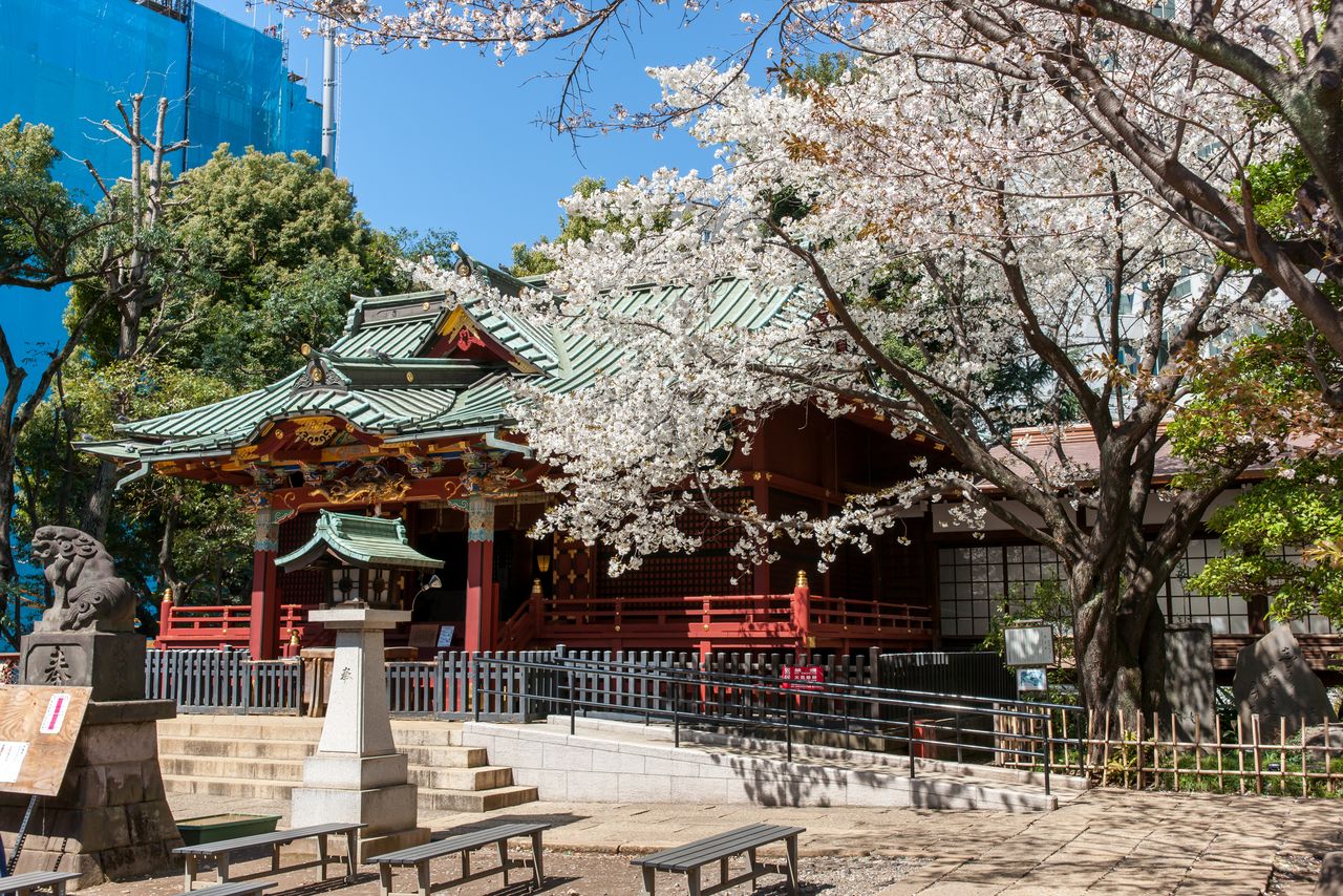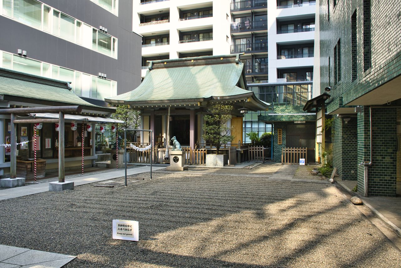 معبد مياماسو ميتاكي يقع قرب محطة شيبويا مباشرة محاطًا بالمباني الشاهقة ويقف بهدوء وسط المدينة (© بيكستا)