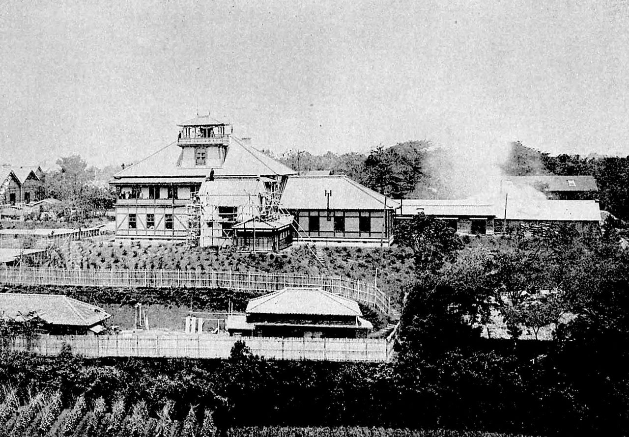 مصنع البيرة التابع لشركة صناعة الجعة الوطنية في عصر ميجي. من كتاب ”أشهر المعالم السياحية في اليابان“ (عام 1900). (أرشيف مكتبة البرلمان الوطنية)