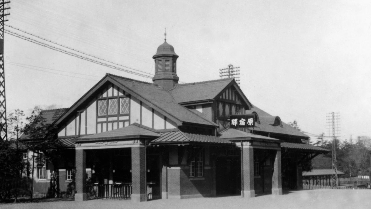 (النص الأصلي باللغة اليابانية، صورة العنوان الرئيسي: محطة هاراجوكو بعد انتقالها إلى موقعها الحالي (الصورة من تقديم: متحف السكك الحديدية)