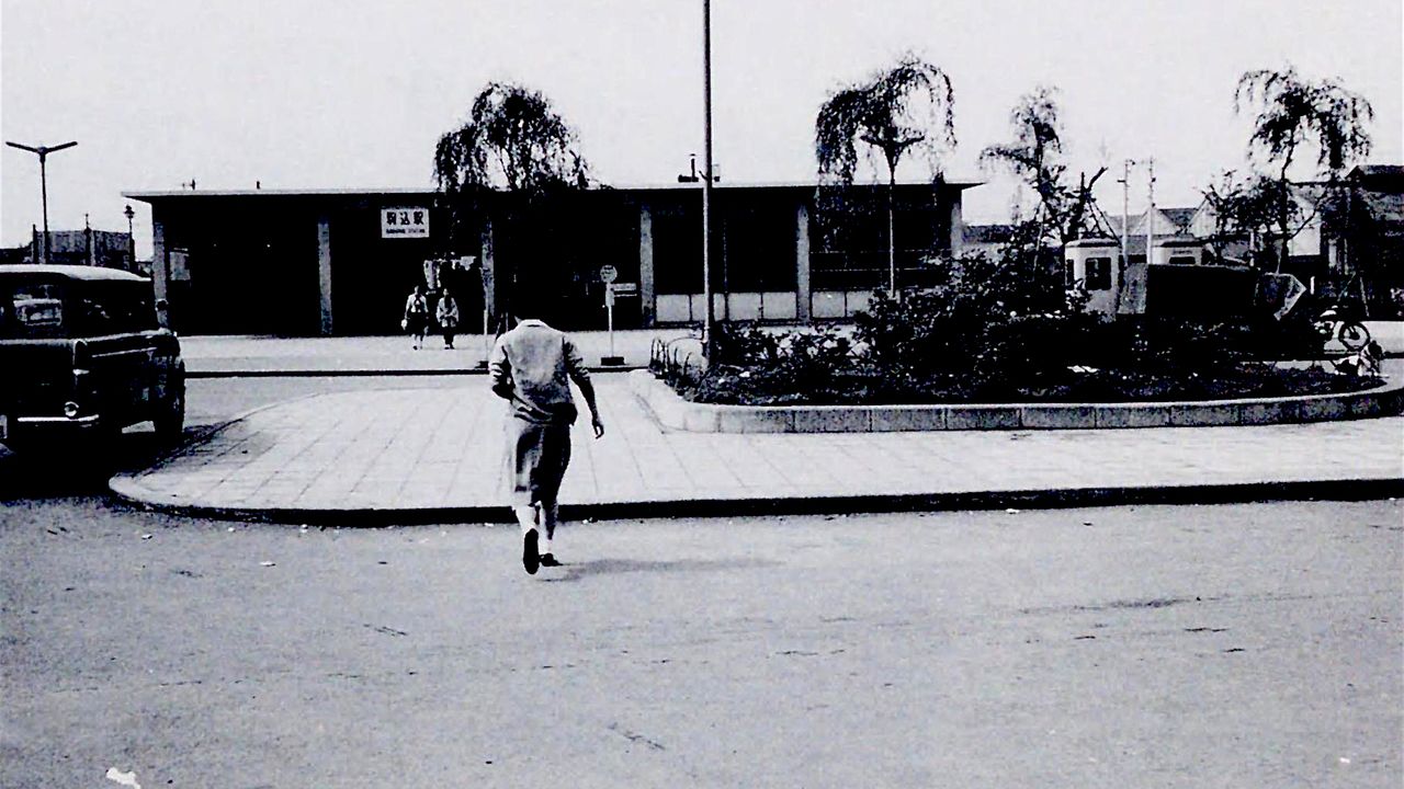 (النص الأصلي باللغة اليابانية، صورة العنوان الرئيسي: محطة كوماغومي عام 1958. في الأمام شارع هونغو. من كتاب ”طوكيو التي بُعثت من جديد“ (أرشيف مكتبة البرلمان الوطنية))
