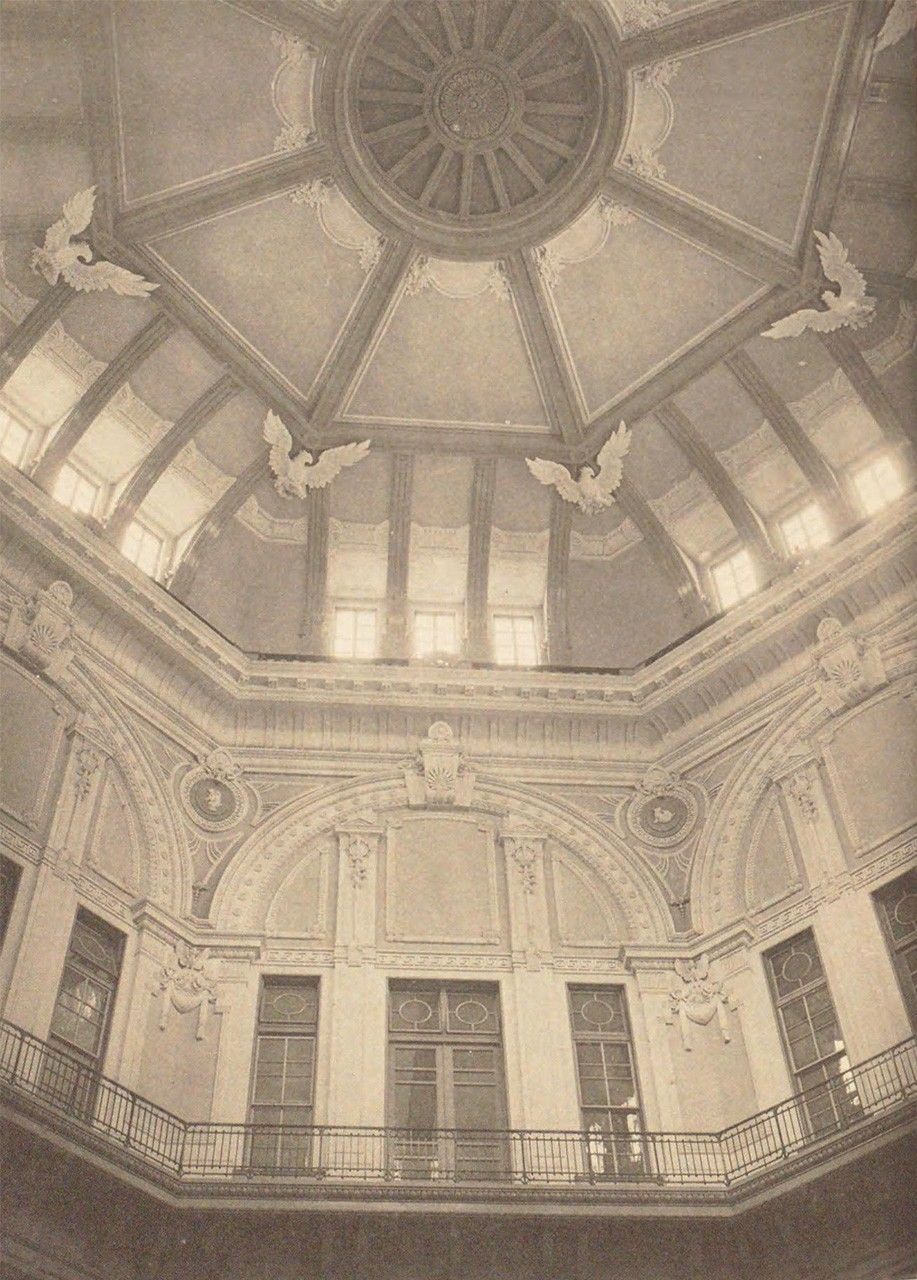 سقف القبة عند افتتاح المحطة. المصدر: ”الملخص المعماري لخطوط السكك الحديدية فوق الجسور المرتفعة في مدينة طوكيو“، أرشيف مكتبة البرلمان الوطنية