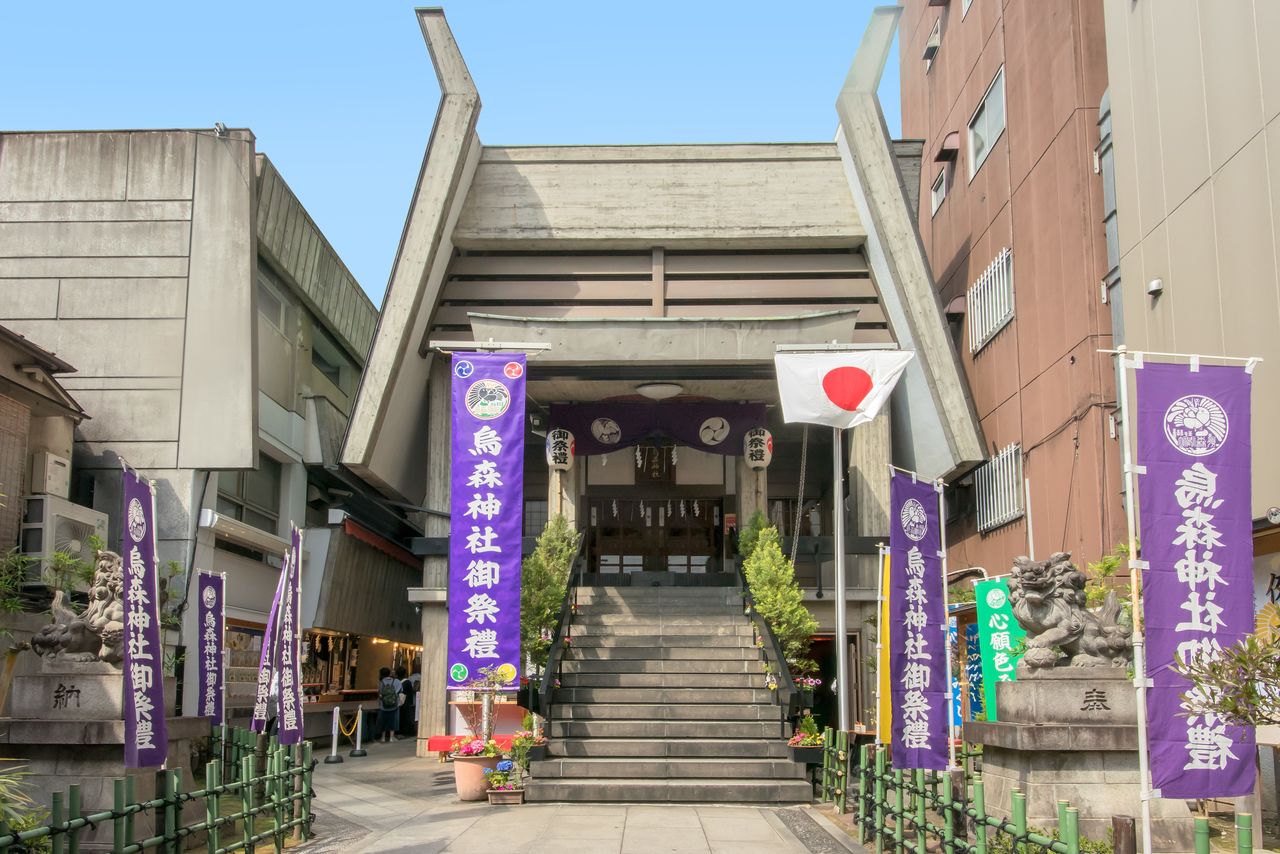 على بُعد دقيقتين إلى ثلاث دقائق سيرًا على الأقدام من محطة شينباشي يقع ”ضريح كاراسوموري“ في زقاق تصطف فيه مطاعم صغيرة، ويذكر كتاب الجغرافيا ”إيدو سوناغو“ أن سبب تسمية ”كاراسوموري“ (غابة الغربان) يعود إلى ضريح قائم في غابة كانت تحلق فيها الغربان التي تُعتبر رسلًا للآلهة. كما توجد رواية تقول إن فوجيورا نو هيديساتو، الذي توجه للسيطرة على تايرا نو ماساكادو خلال تمرد جوهي تينغيو بين عامي 935 و941، صلى هناك طلبًا للنصر في المعركة.
