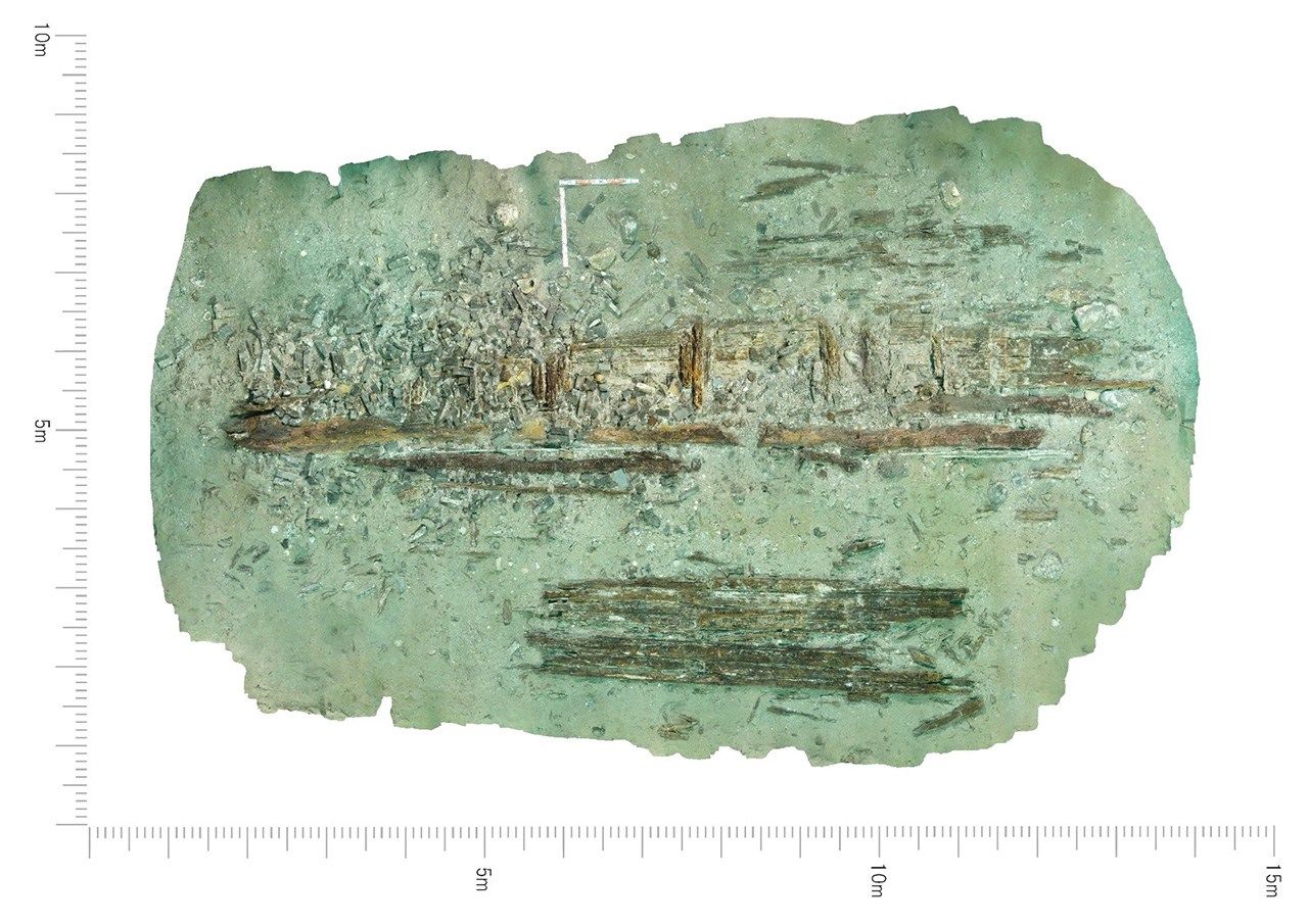 صورة من الأعلى لأول سفينة غارقة تم اكتشافها. (بإذن من مجلس التعليم في ماتسوؤرا)