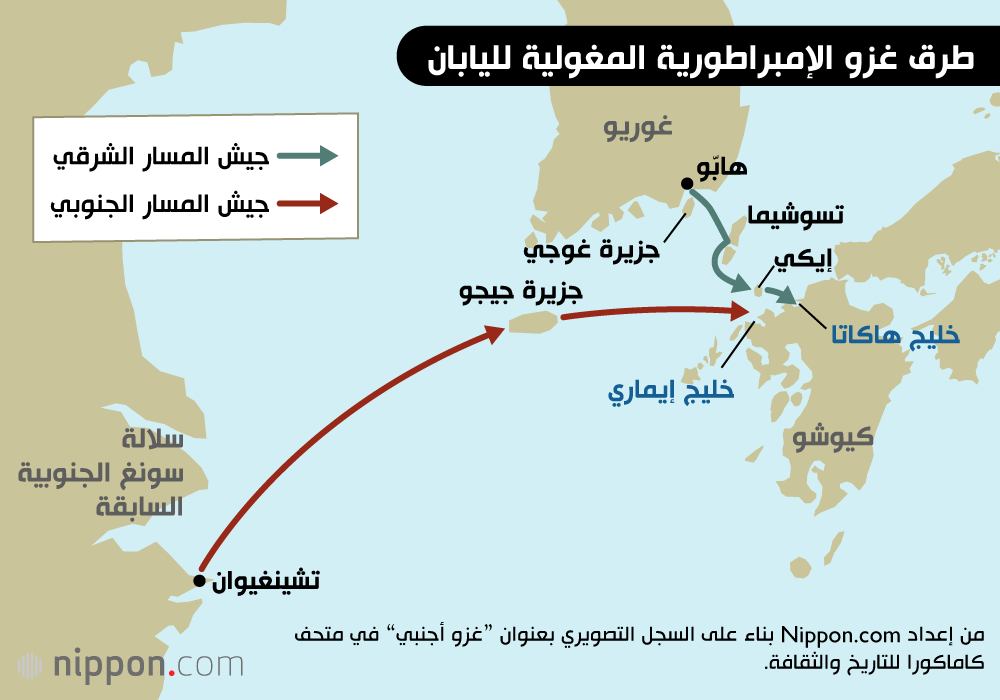 بعد أول غزو فاشل لليابان عام 1274، أرسل الزعيم المغولي قوبلاي خان مؤسس أسرة يوان الصينية، دفعة ثانية من القوات عام 1281. أبحرت السفن التي تحمل قوات يوان على مجموعتين: جيش المسار الشرقي الذي انطلق من دولة غوريو التابعة للمغول في شبه الجزيرة الكورية، وجيش المسار الجنوبي المنطلق من أراض استولت عليها سلالة سونغ الجنوبية الصينية مؤخرا.