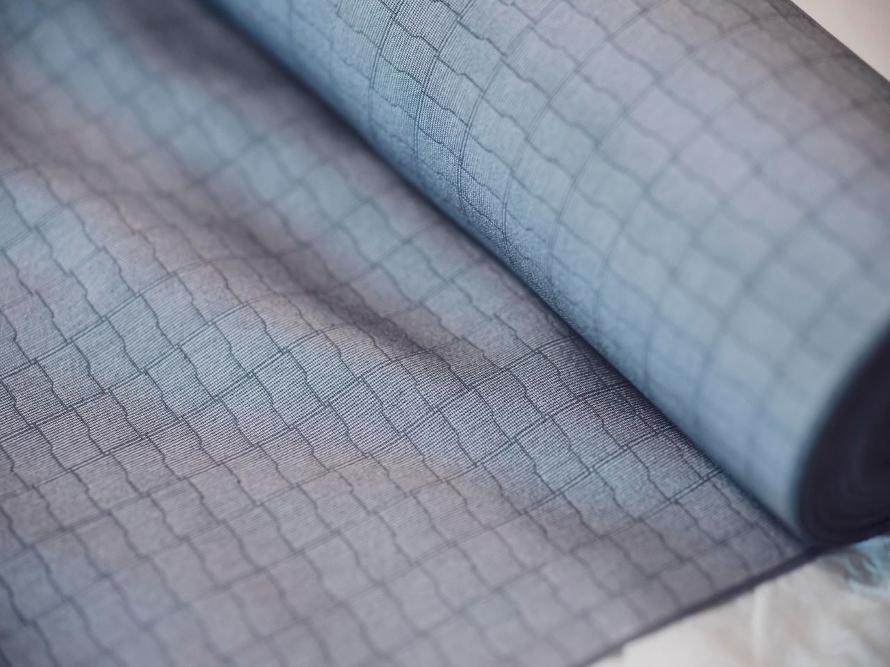 لفة قماش بزخارف ”رينجي“. يحتوي كل مربع على خطوط دقيقة للغاية تكاد لا تُرى بالعين المجردة. (© موري ماساتوشي)