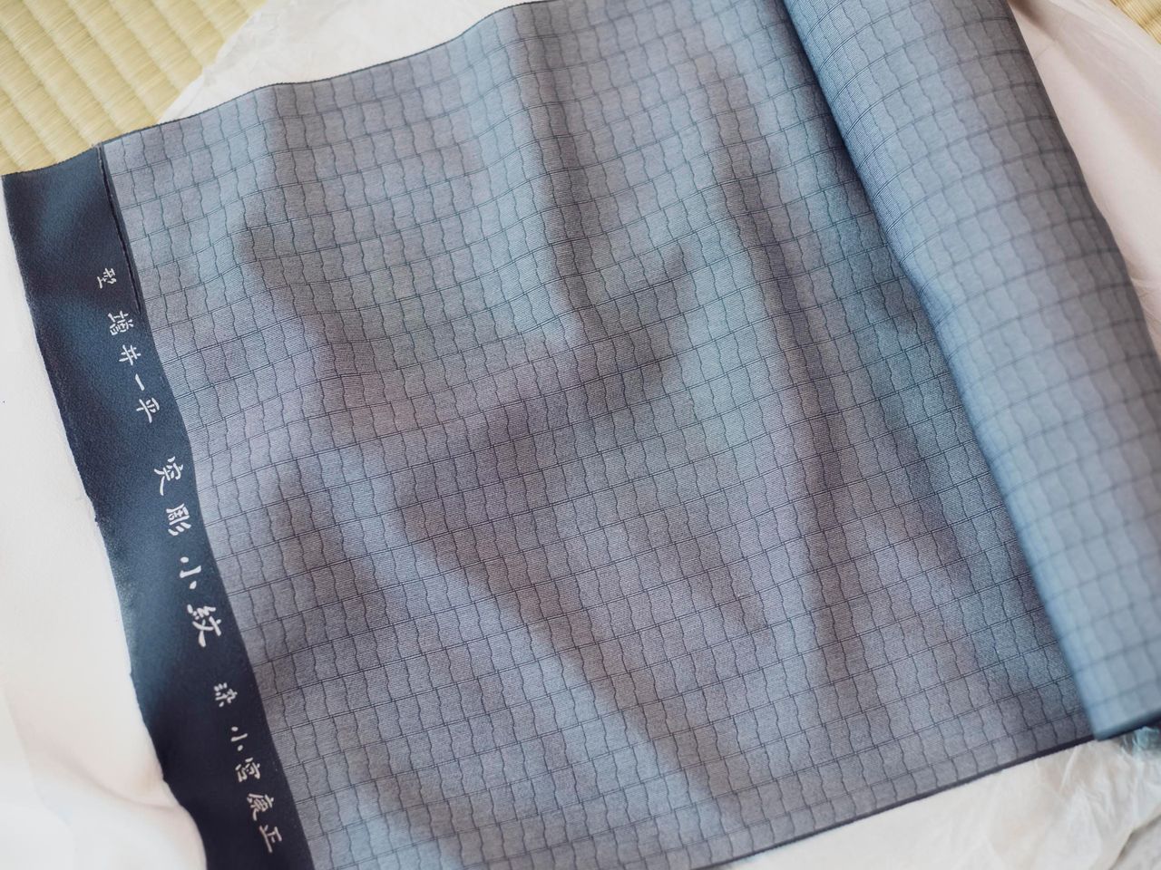 تفاصيل كيمونو ”إيدو كومون“ بتصميم ”غوكو-سامي“. من بين أنماط جلد القرش، يعتبر نمط ”غوكو-سامي“ الأكثر رقة وأناقة. تم عرضه في الدورة الثامنة والأربعين لمعرض اليابان لفنون المنسوجات التقليدية. (الصورة مقدمة من جمعية الحرف اليابانية)