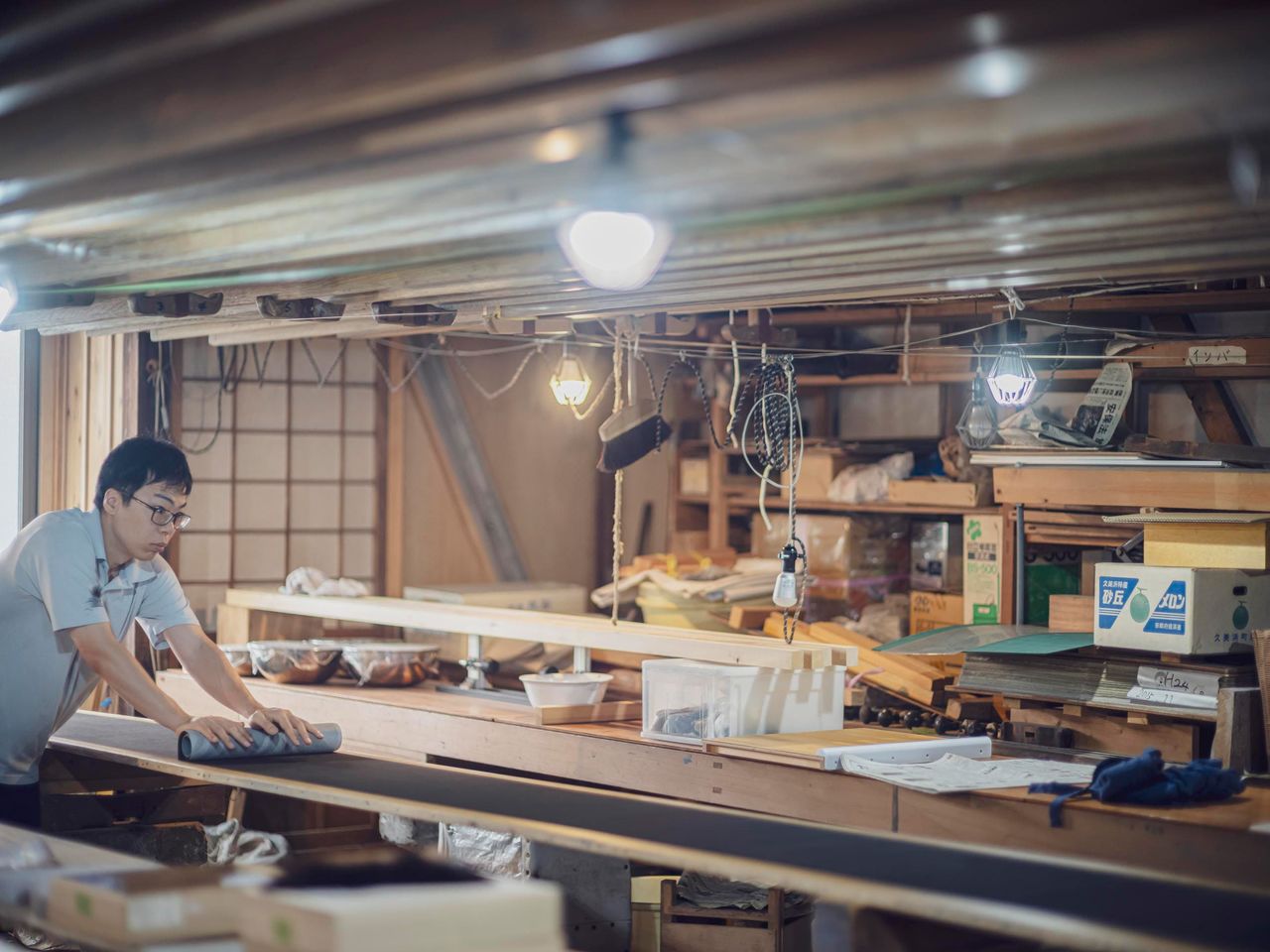 كوهي الابن الثاني للسيد كوميا، منغمس تمامًا في عمله داخل المشغل. (© موري ماساتوشي)