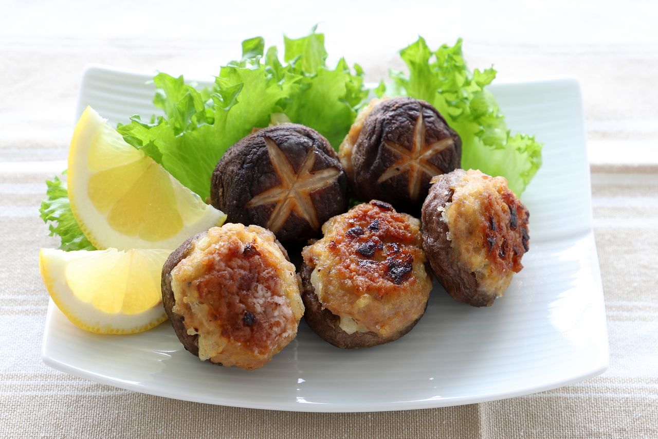يُعد هذا الطبق من المقبلات الكلاسيكية المحضَّرة من فطر شيتاكي المحشو. فبعد إزالة السيقان من حبات شيتاكي الطازجة، تُحشى القبعات باللحم المفروم، ثم تُطهى إمّا بالشواء أو بتغليفها بفتات خبز البانكو وقليها. ومع كل لقمة عصارية، تتجلّى نكهة أومامي غنية وممتلئة.