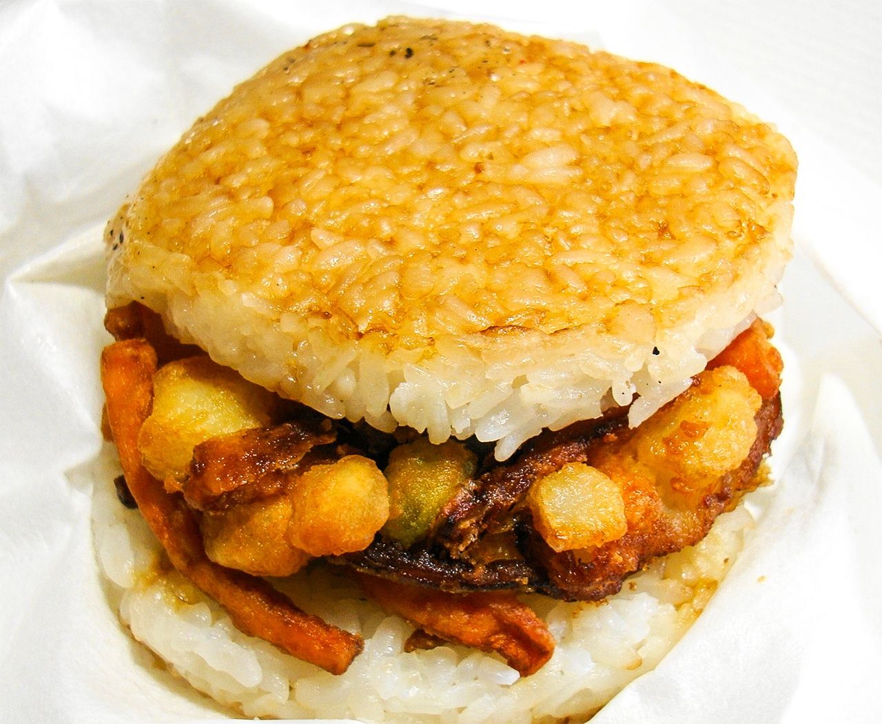واحد من الأصناف المتنوعة جدا للهامبرغر المصنوع من الأرز والتي تقدمها سلسلة الوجبات السريعة ’’موس برغر‘‘.
