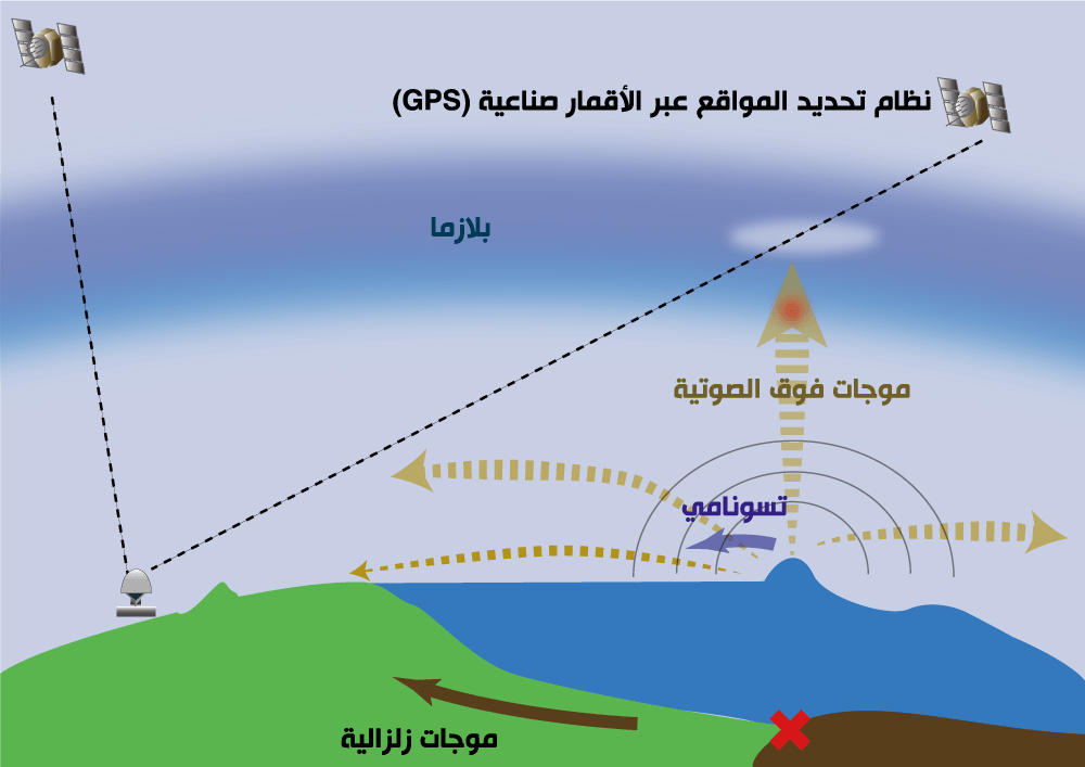 كما تحمل عمليات الإرسال الصادرة من نظام تحديد المواقع إلى كل محطة قاعدية المعلومات التي يتم التقاطها أثناء المرور عبر طبقة البلازما. ويمكن استخدام هذه المعلومات لقياس التغيرات في البلازما، مما يسمح بتحديد بداية التسونامي بدقة. وفي الوقت الحالي، يستغرق تسجيل تسونامي ناتج عن زلزال في نطاق 9 درجات على مقياس شدة الزلازل حوالي 20 دقيقة، ويجري حاليًا تطوير تقنيات لتقليص ذلك الوقت إلى حوالي 12 دقيقة.