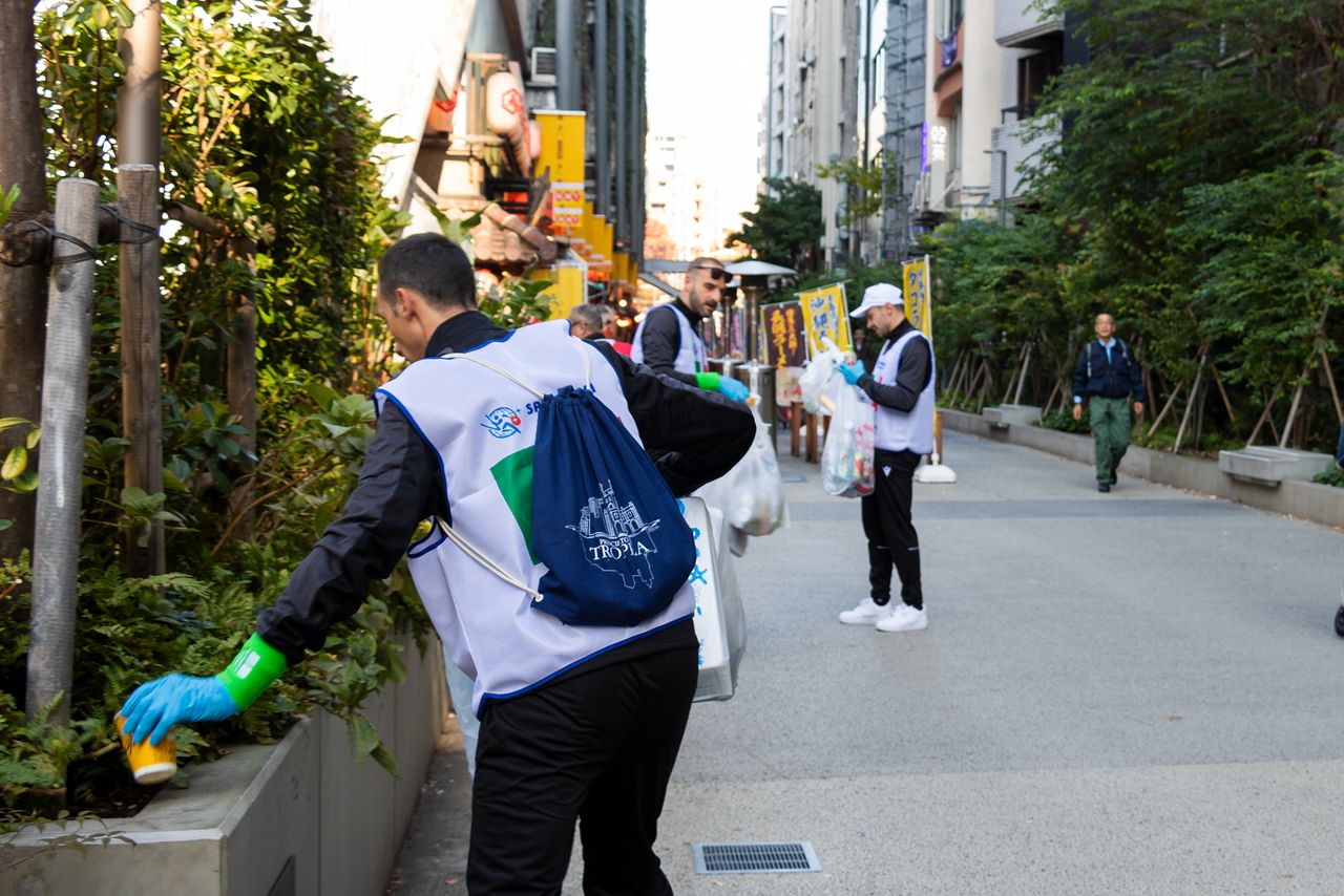 قام كل فريق بتطوير استراتيجيات فريدة، مثل التركيز على مناطق الترفيه أو الشوارع الجانبية. تُظهر هذه الصورة الفريق الإيطالي وهو يبحث عن القمامة في منطقة شيبويا يوكوتشو المكتظة بأماكن الطعام.