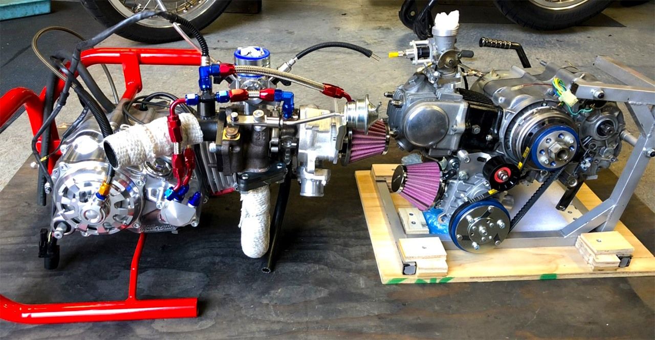 أصغر محرك سعة 50 سم مكعب فائق الشحن في العالم. (© تشيكاكاني تاكوشي)