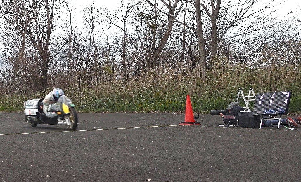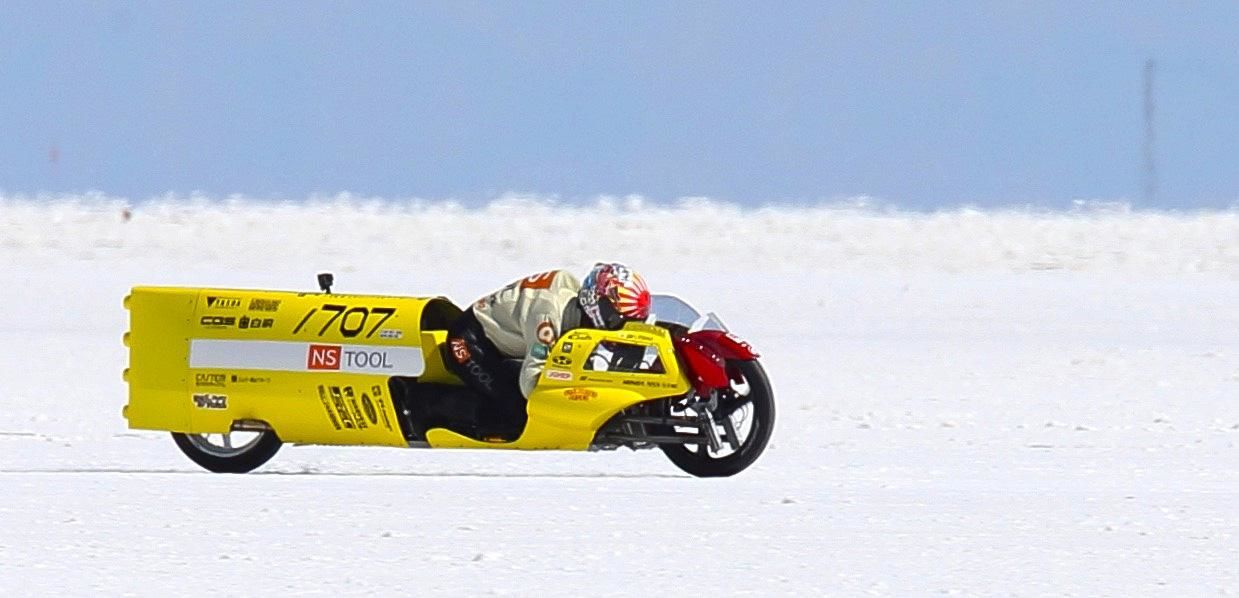 لأسباب تتعلق بالسلامة، أُجريت اختبارات أكيتا مع إبقاء سرعة المحرك منخفضة، وكانت مسافة قياس الزمن ألف متر، أي أقصر بستمئة متر من مسافة قياس الزمن في بونفيل التي يبلغ طولها ميلًا. وبالنظر إلى أن هذا الرقم القياسي تم تحقيقه في ظروف غير مواتية، فقد شعر الفريق بالثقة في فرصه في السباق الفعلي. (الصورة مقدمة من تشيكاكاني تاكوشي)