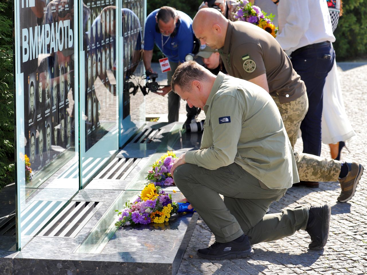 انضمام عمدة دنيبرو بوريس فيلاتوف إلى السكان لإحياء ذكرى استقلال أوكرانيا عند نصب تذكاري، 24 أغسطس/ آب 2023. (بإذن من مدينة دنيبرو)
