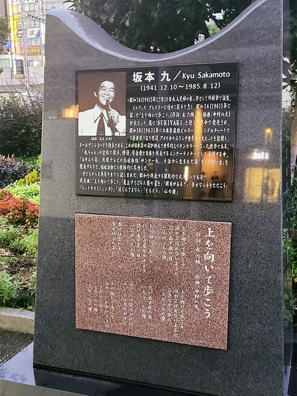 فعلى سبيل المثال، عندما أنظر إلى رصيف محطة كاواساكي حيث يتم تشغيل أغنية ”سوكياكي“ لساكاموتو كيو، لا أعتقد أن الكثير من الأجانب قد لاحظوا لحن المحطة هذا. ويوجد نصب تذكاري أمام دَوَّار محطة جي آر كاواساكي يعرض إنجازات ساكاموتو، بما في ذلك حصول أغنيته على المركز الأول في الولايات المتحدة، ولكن المعلومات باللغة اليابانية فقط. وأتساءل عما إذا كان الأجانب سيكونون مهتمين إذا كان هناك على الأقل شرح باللغة الإنجليزية يا ترى؟