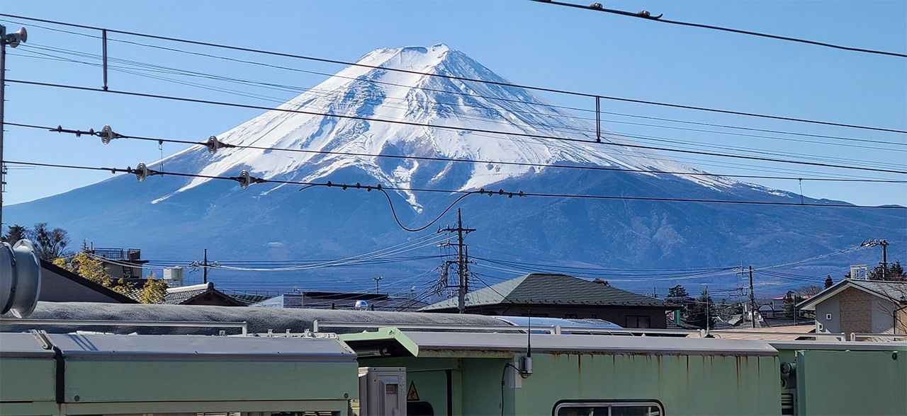 منظر جبل فوجي من رصيف محطة شيمويوشيدا (تصوير الكاتب)