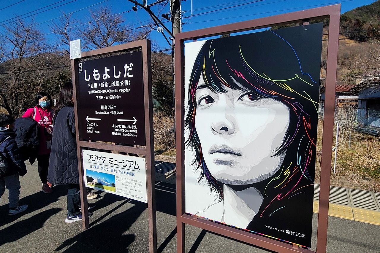 ولكن عندما زرت هذه المحطة في شهر يناير/كانون الثاني من عام 2024، كان رصيفها مزدحمًا بالعديد من الأجانب من أوروبا وأمريكا وآسيا، ولكنهم كانوا جميعًا مشغولين بالتقاط الصور لجبل فوجي، ولم يَبد أنهم يُبدون الاهتمام بالألحان أو اللوحات. ولو كان هناك شيء مفقود، فقد يكون من الجيد إنشاء زاوية داخل المحطة تنقل سحر مدينة فوجيوشيدا وجبل فوجي وشيمورا ماساهيكو باللغتين اليابانية والإنكليزية.