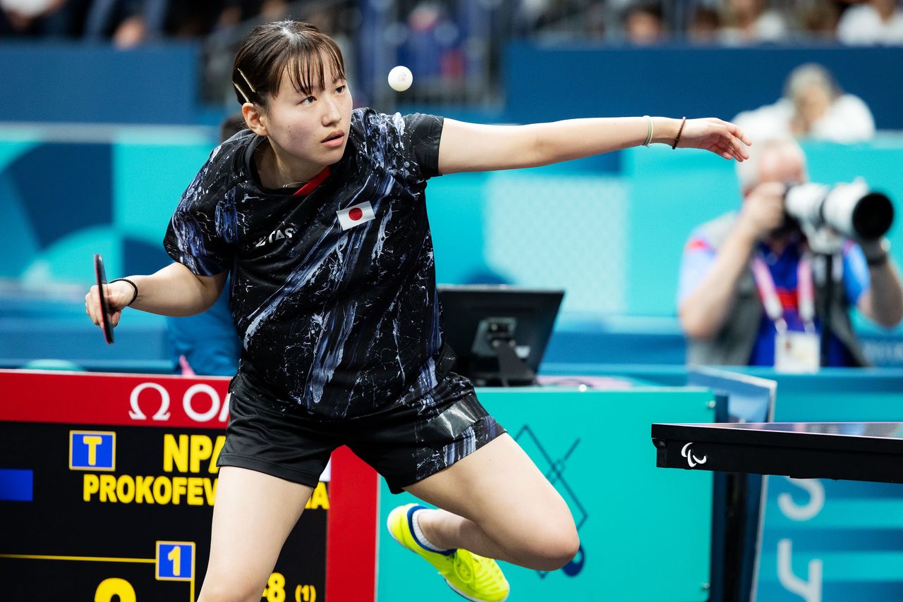وادا أثناء مباراة تنس الطاولة في دورة الألعاب البارالمبية في باريس. (© أوتشي تاكاو)