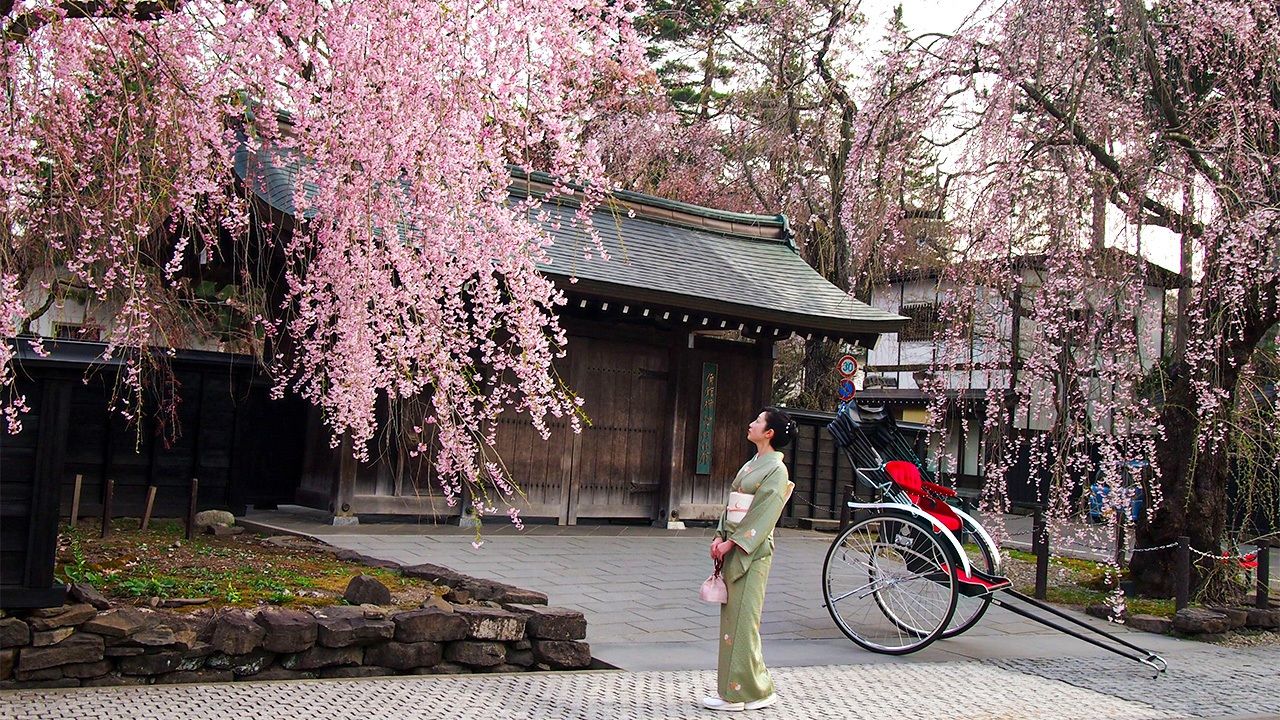 (النص الأصلي باللغة اليابانية، الترجمة من الإنكليزية. صورة العنوان الرئيسي: أشجار الساكورا المتدلية في حي الساموراي في سينبوكو، أكيتا. © جمعية تازاواكو كاكونوداتي للسياحة)