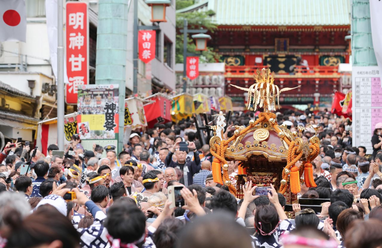 يُعد هذا المهرجان الأهم في طوكيو، إذ يمتد تاريخه لعدة قرون ويُقام بنسخته الكاملة مرة واحدة فقط كل عامين. يتميز الحدث بالموكب الاحتفالي المهيب الذي يضم 200 ضريح محمول، يرفعه المشاركون الذين يرتدون سترات ”هانتن“ التقليدية، ما يضفي على الأجواء طابعًا تراثيًا أصيلًا.