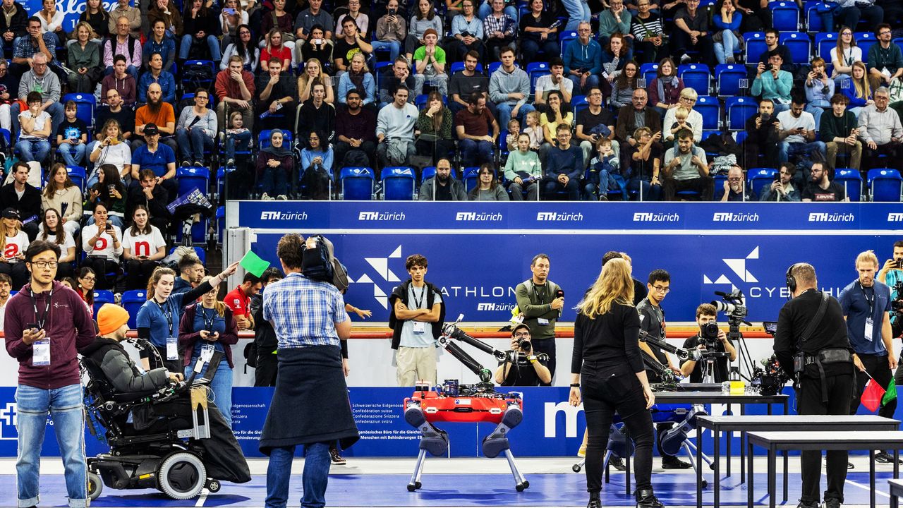 صالة سويس أرينا، مكان إقامة مسابقة سايباثلون 2024، التي جذبت سبعة آلاف متفرج. شارك في المسابقة روبوت بأربعة أرجل.