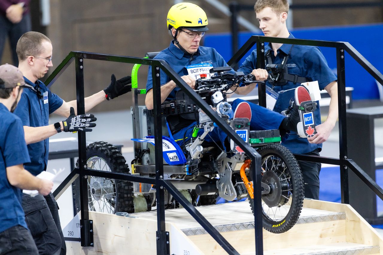 جامعة كولومبيا البريطانية في كندا التي فازت عن فئة الكراسي المتحركة الكهربائية. الهيكل الكبير يلفت الانتباه