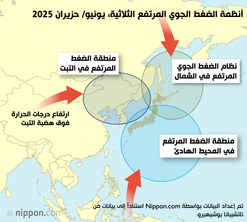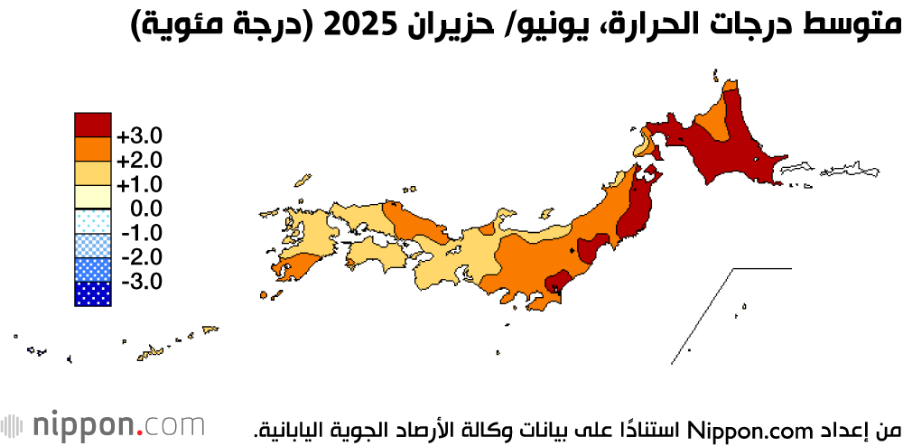 يبين تحليل البيانات بوضوح أن ارتفاع درجات الحرارة في شهر يونيو/ حزيران كان سبباً رئيسياً في موجة الحر التي ضربت البلاد في شهر يوليو/ تموز. ووفقاً لوكالة الأرصاد الجوية اليابانية، بلغت متوسط درجات الحرارة في شهر يونيو/ حزيران مستوى قياسياً، حيث تجاوزت المعدل الطبيعي بـ 2.34 درجة مئوية. كما ارتفعت درجات حرارة سطح المحيط أيضاً، حيث بلغت 1,2 درجة مئوية فوق المعدل الطبيعي للشهر، مساوية بذلك الرقم القياسي المسجل في عام 2024.