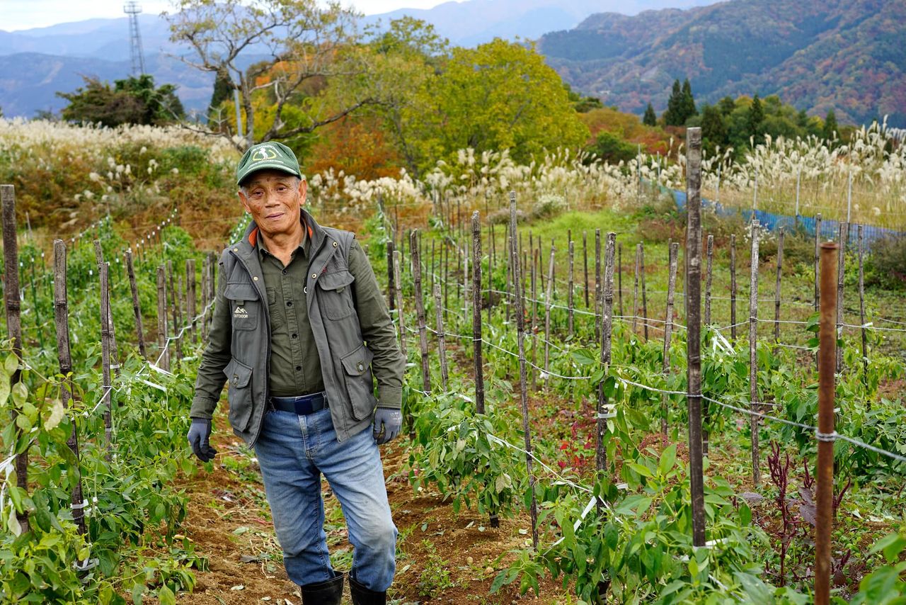 تمتد حقول الفلفل الخاصة بإيماي على طول منحدر تلة يبعد حوالي 15 دقيقة بالسيارة من مصنع أوجيرو. وتحت شمس الظهيرة، تتوهج ثمار توت الروان بلون قرمزي، فيما تتلألأ سيقان الحشائش الفضية. تُعلق ثمار الفجل الأبيض لتجف تحت سقف الكوخ القريب. وعندما زرت المكان، كان الهواء البارد النقي يلف المنطقة بأكملها؛ فقد انتهى موسم الحصاد بالفعل، ولم يتبقَّ سوى بعض حبات الفلفل الخضراء الصغيرة معلقة هنا وهناك. يقول إيماي: ”هذا العام، لم يتحول بعض الفلفل إلى الأحمر بالكامل، ربما بسبب شدة حرارة الصيف“. ولعل التعبير عن نكهة المكان يعني، ببساطة، إظهار تأثير المناخ والطقس.