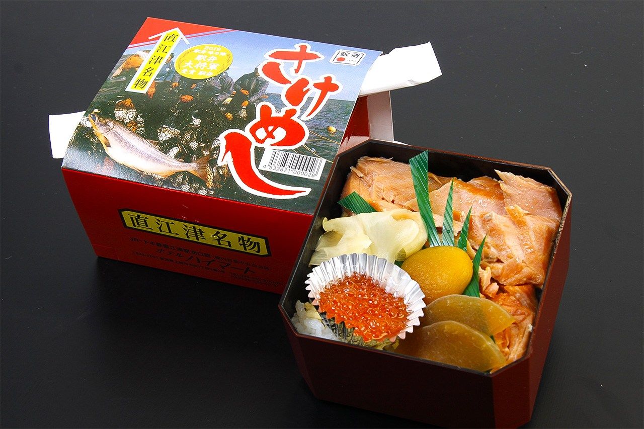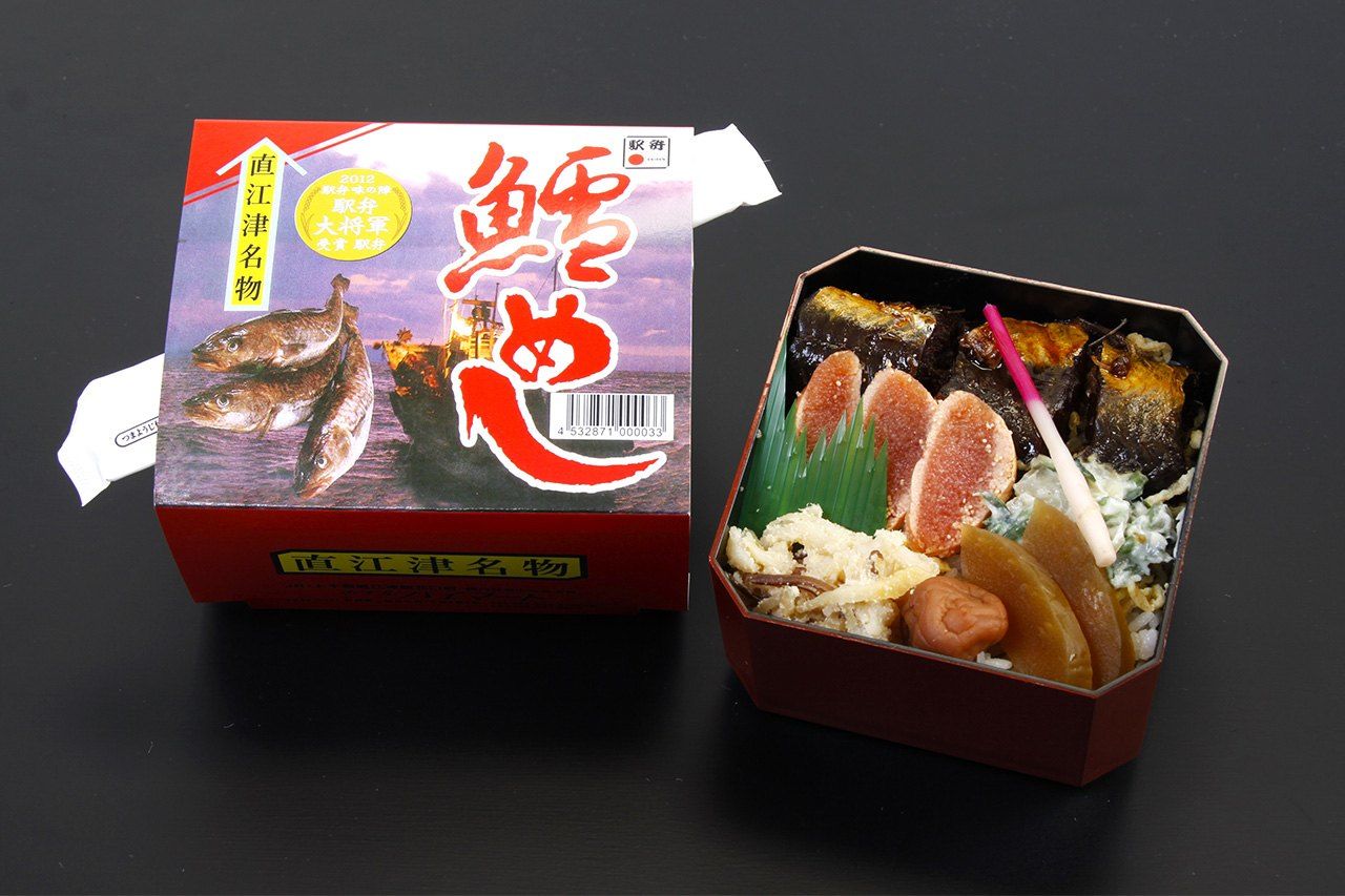 وجبة ”الإيكيبن“ (عبارة عن وجبه يابانية تقليدية تعبأ وتؤكل عادًة أثناء السفر بالقطار) هذه موجودة منذ عام 1992، وهي حلم لعشاق سمك القد. يتم طهي سمك القد (تارا) في صلصة الصويا المحلاة حتى يجف تقريبًا، مما يجعل العظام طرية، ويضاف إليه كمية كبيرة من بطارخ سمك القد الغني والقشدي. يتم استخدام نوع خاص من الأرز الياباني يسمى ”كوشيهيكاري“ المزروع محليًا، ويتم طهيه مع الأعشاب البحرية المملحة لإضافة نكهة مميزة. تشمل الوجبة الخيار المخلل في رواسب الساكى، ونبات النوزاوا المخلل في الواسابي.