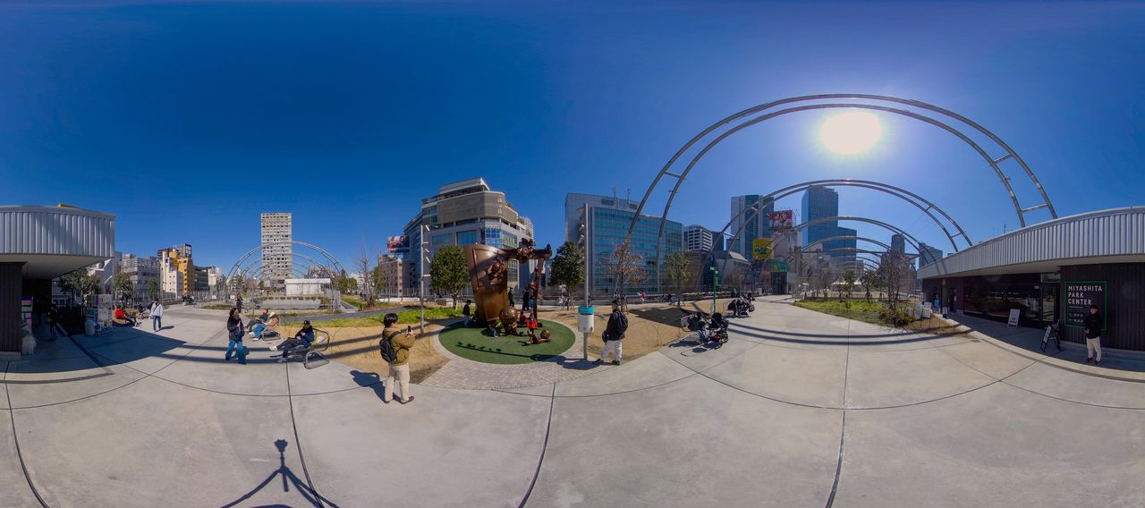 في الطرف الآخر من زقاق ˮنونبي يوكوتشو“ يوجد متنزه ˮمياشيتا“، وهو منشأة تجارية مكونة من أربعة طوابق ومتنزه حضري تم تشييده في عام 2020 في موقع متنزه يحمل نفس الاسم. (© سوميسي ناوتو)