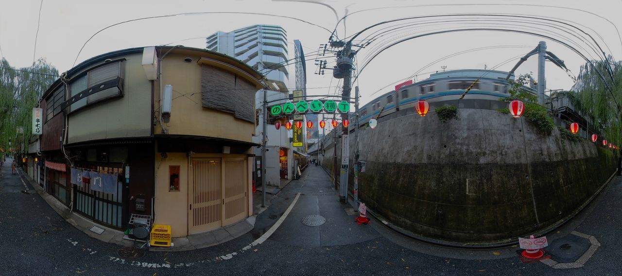 ˮنونبي يوكوتشو“ عبارة عن مجموعة من حوالي 30 حانة أسفل مسارات خط قطارات الـ جى آر المرتفعة. ويقع الزقاق فوق نهر شيبويا، الذي يمر تحت الأرض هنا. (© سوميسي ناوتو)