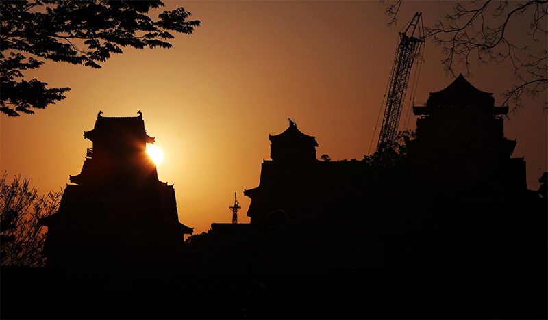 أبراج قلعة كوماموتو الشهيرة في مدينة كوماموتو، بمحافظة كوماموتو، جنوب غرب اليابان، صباح يوم الجمعة، ١٤ أبريل/ نيسان ۲٠١٧، بعد عام واحد من وقوع الزلازل القوية التي ضربت المحافظة والمناطق المجاورة لها. في ١٤ أبريل ٢٠١٦، ضرب زلزال قوي بلغت قوته ٦.٥ درجة على مقياس ريختر منطقة كوماموتو، تلاه زلزال بقوة ٧.٣ درجة بعد يومين. وقد تجاوز العدد الإجمالي لمن لقوا حتفهم جراء الكارثة ٢٠٠ شخص بما في ذلك الأسباب غير المباشرة. الصورة من جيجي برس.