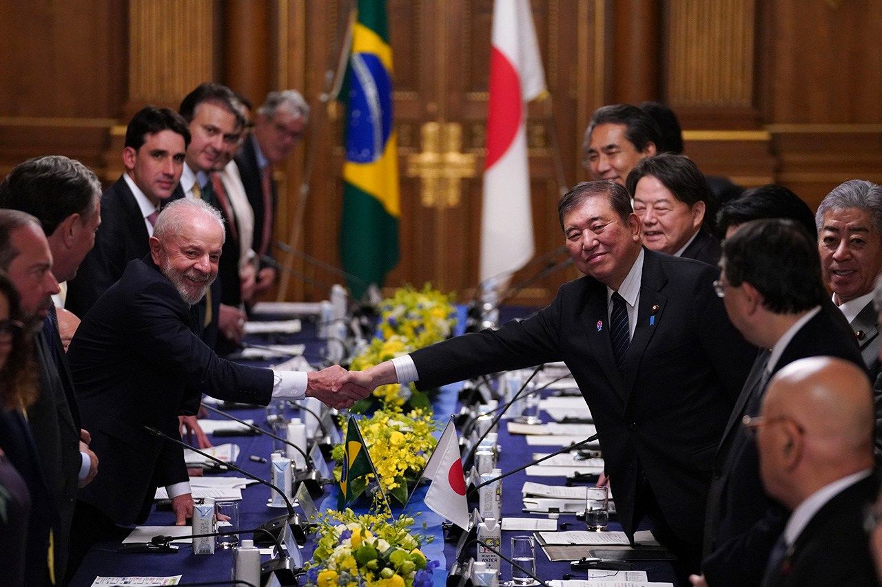 رئيس الوزراء الياباني إيشيبا يلتقي مع الرئيس البرازيلي ”لويس إيناسيو لولا دا سيلفا“ في طوكيو، حيث اتفقا على التعاون في توسيع الاستثمارات وتعزيز الجهود الرامية لخفض انبعاثات الكربون.